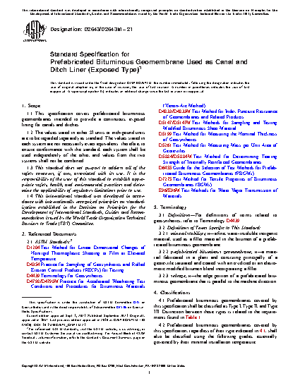 Standard Specification for Prefabricated Bituminous Geomembrane Used as Canal and Ditch Liner (Exposed Type)