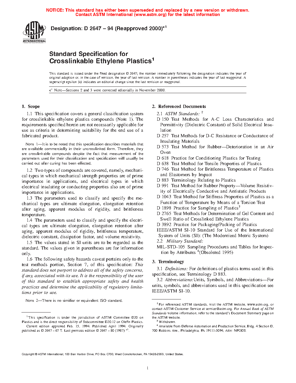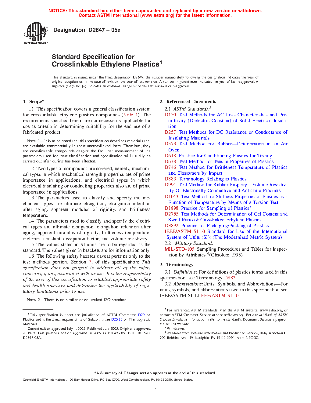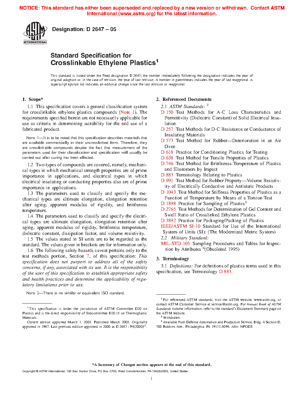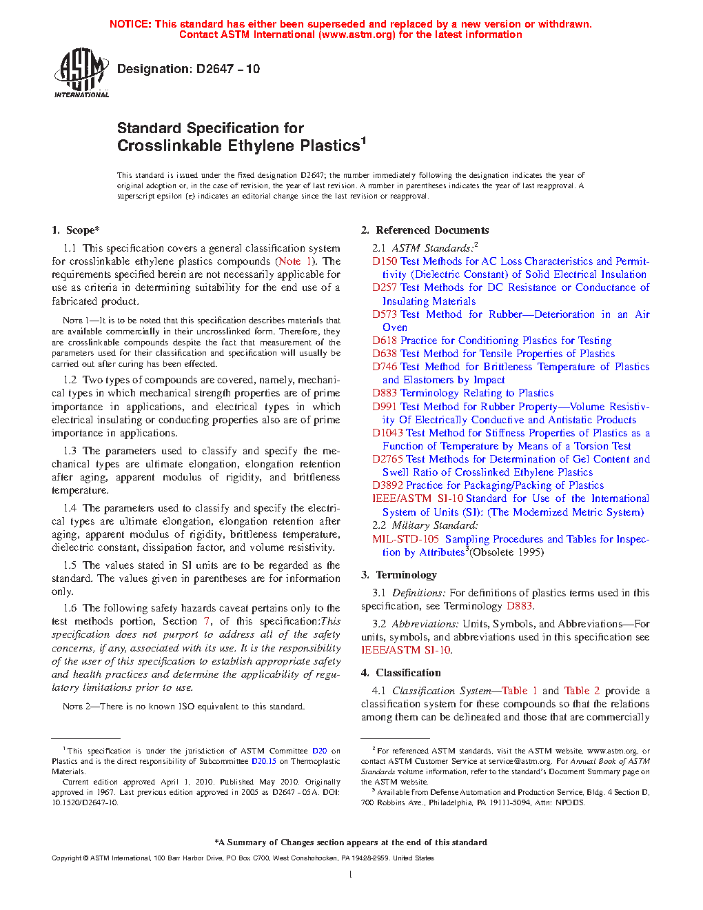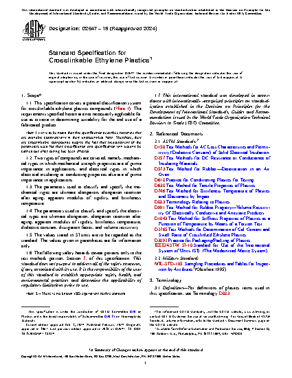 1.1 This specification covers a general classification system for crosslinkable ethylene plastics compounds (Note 1). The requirements specified herein are not necessarily applicable for use as criteria in determining suitability for the end use of a fabricated product.