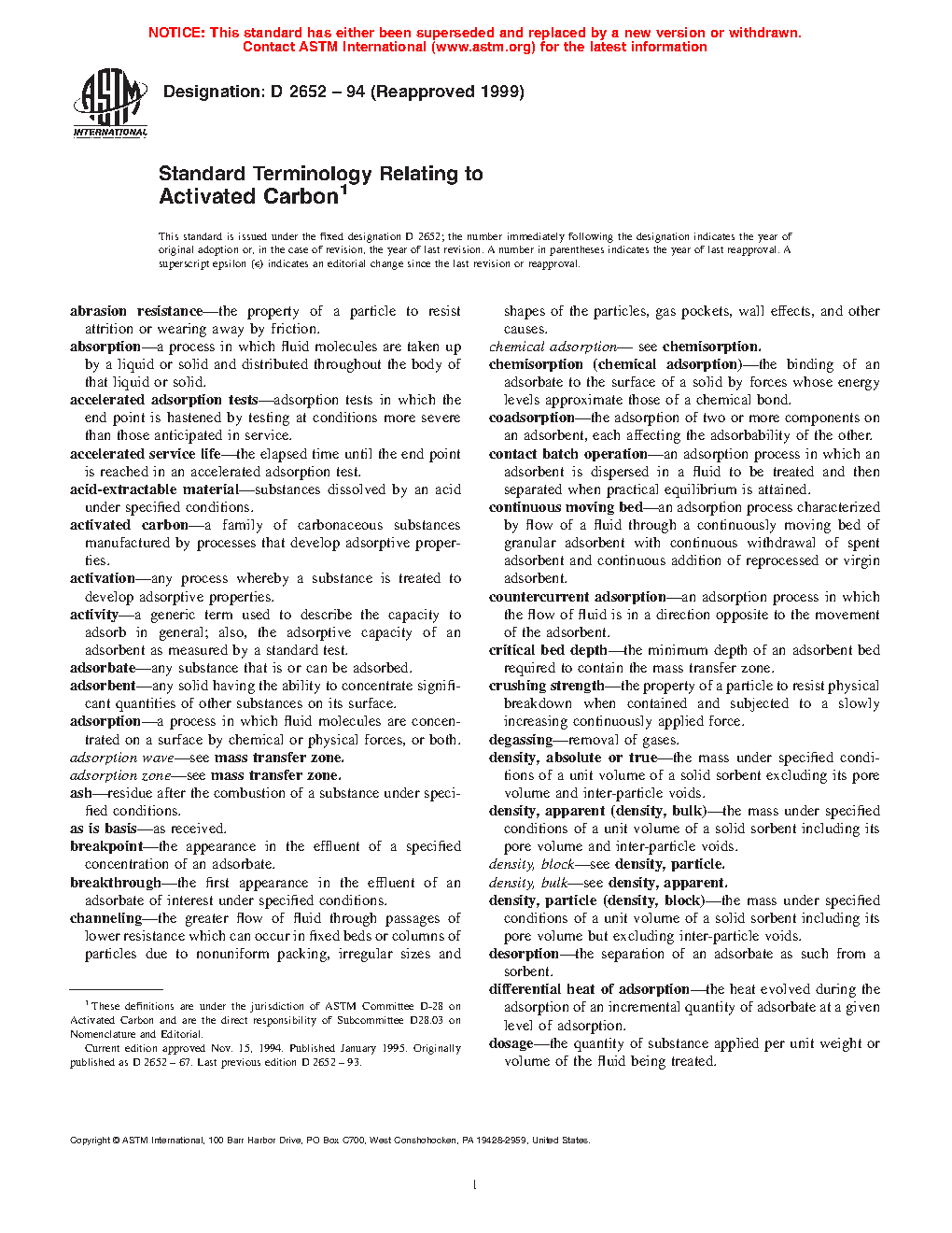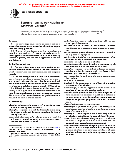 1.2 When any of the definitions in this terminology are quoted or published out of context, editorially insert the limiting phrase "in activated carbon" after the dash following the term to properly limit the field of application of the term and definition.