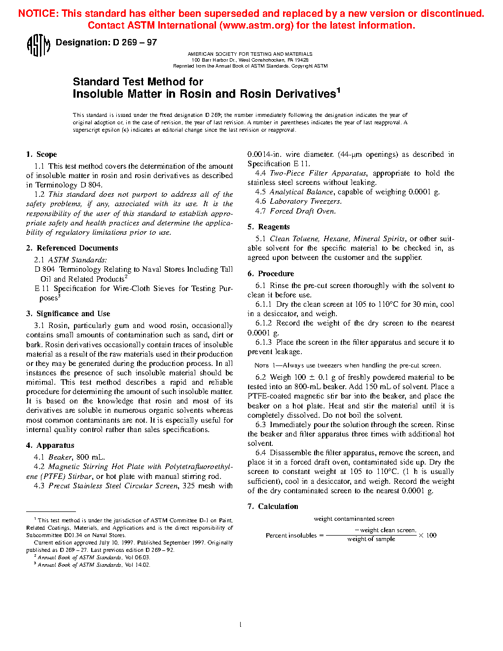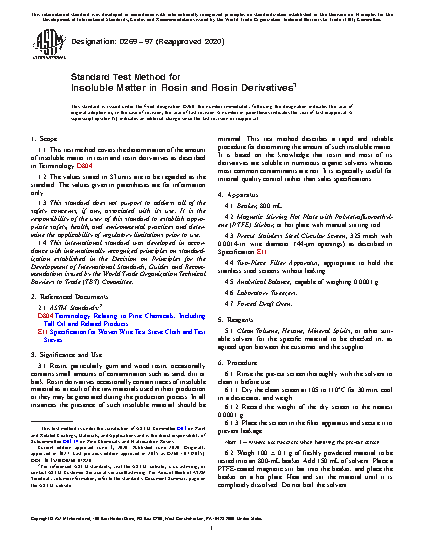 1.1 This test method covers the determination of the amount of insoluble matter in rosin and rosin derivatives as described in Terminology D804.