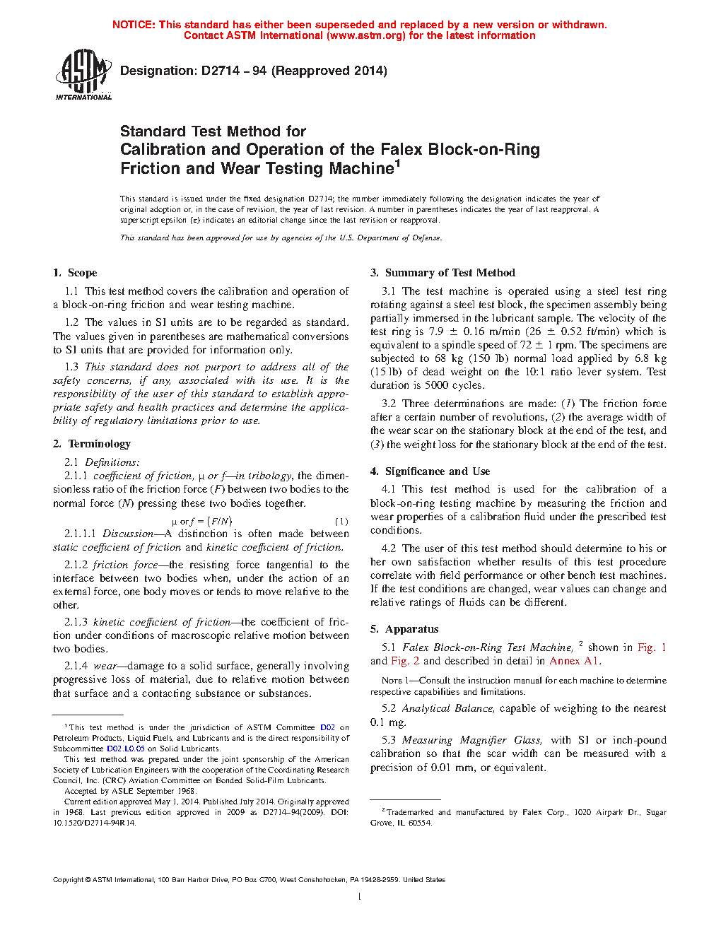1.1 This test method covers the calibration and operation of a block-on-ring friction and wear testing machine.