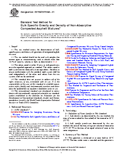 5.1 The results obtained from this test method can be used to determine the unit weight of compacted dense bituminous mixtures and in conjunction with Test Method D3203, to obtain percent air voids. These values in turn may be used in determining the relative degree of compaction.