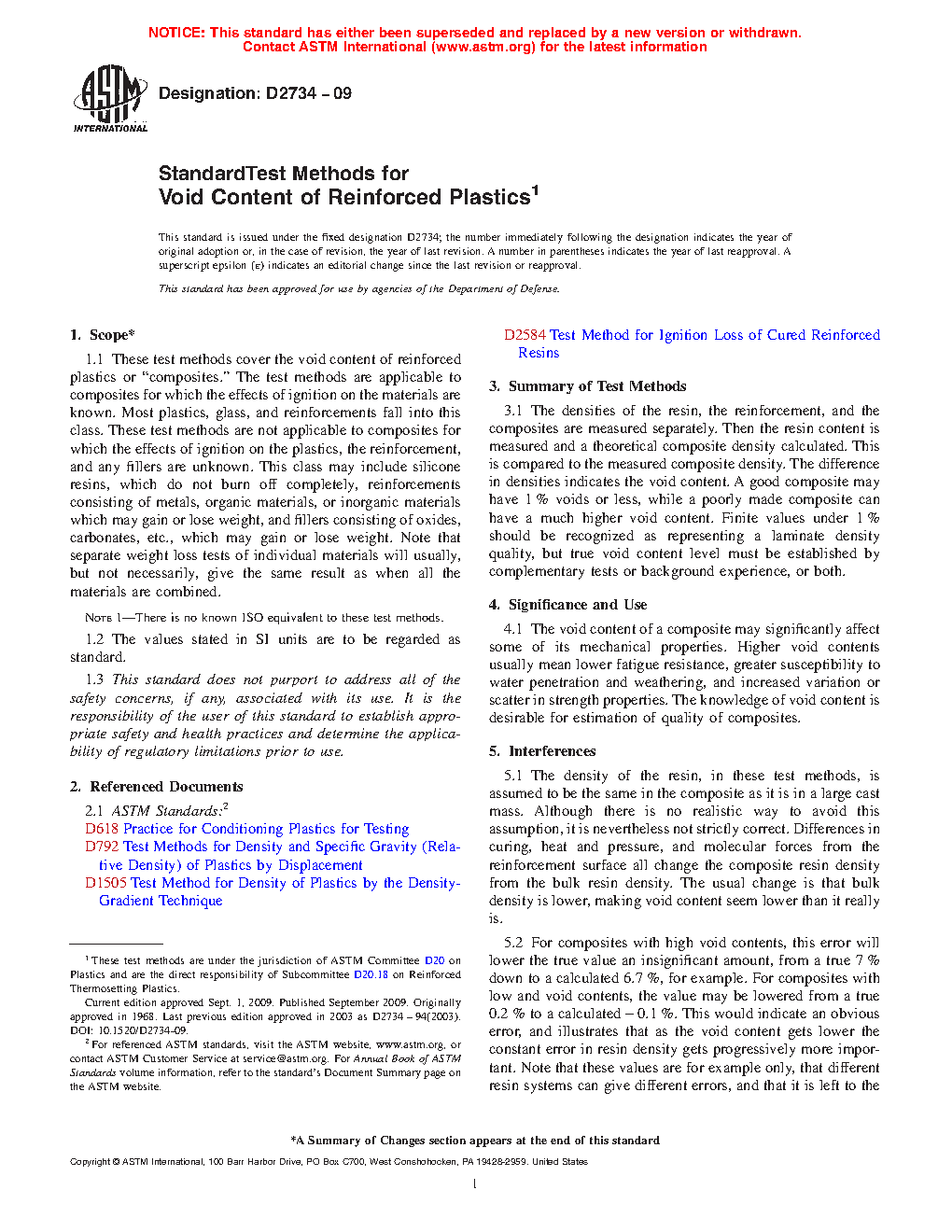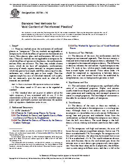 1.1 These test methods cover the void content of reinforced plastics or “composites.” The test methods are applicable to composites for which the effects of ignition on the materials are known. Most plastics, glass, and reinforcements fall into this class. These test methods are not applicable to composites for which the effects of ignition on the plastics, the reinforcement, and any fillers are unknown. This class may include silicone resins, which do not burn off completely, reinforcements consisting of metals, organic materials, or inorganic materials which may gain or lose weight, and fillers consisting of oxides, carbonates, etc., which may gain or lose weight. Note that separate weight loss tests of individual materials will usually, but not necessarily, give the same result as when all the materials are combined.