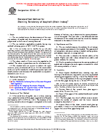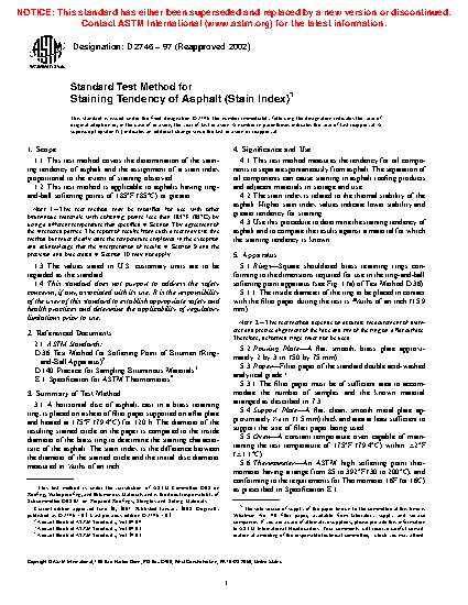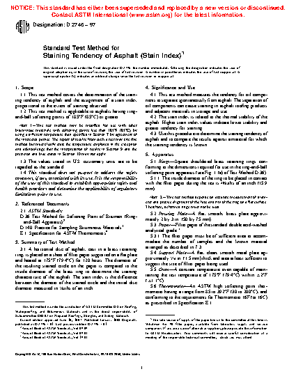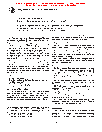 1.1 This test method covers the determination of the staining tendency of asphalt and the assignment of a stain index proportional to the extent of staining observed.