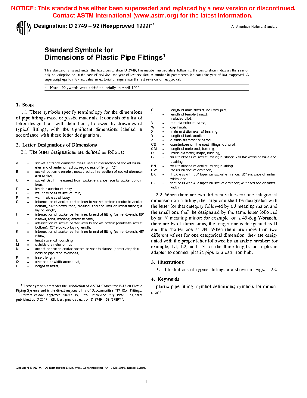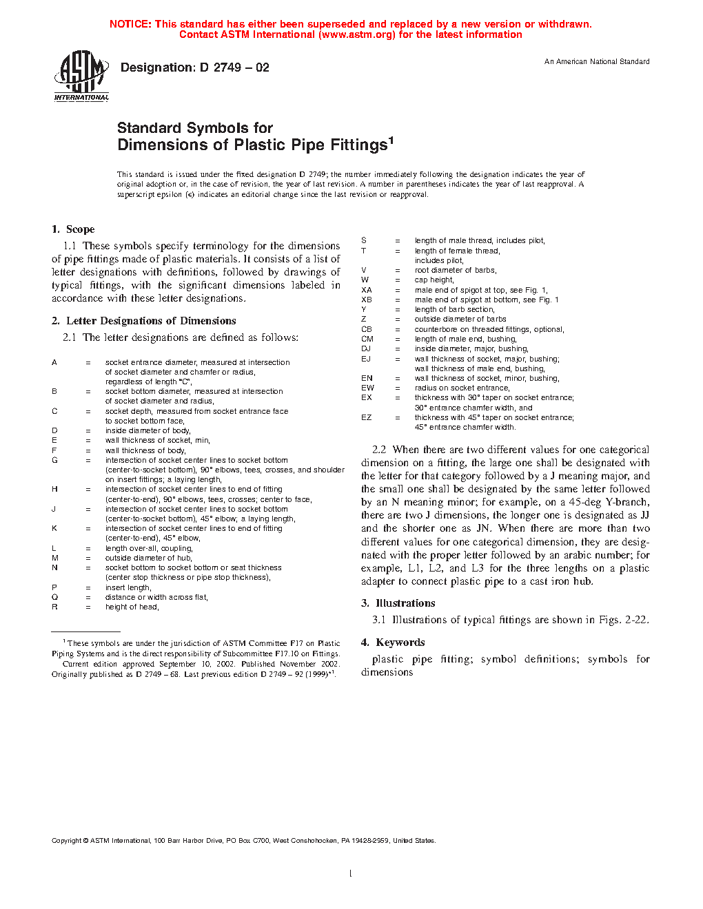 Standard Symbols for Dimensions of Plastic Pipe Fittings