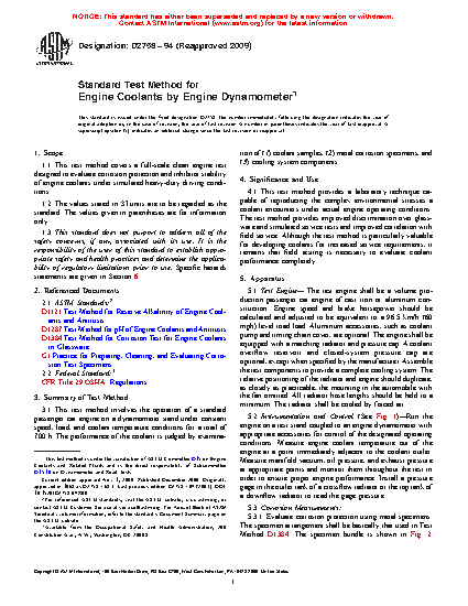 This test method provides a laboratory technique capable of reproducing the complex environmental stresses a coolant encounters under actual engine operating conditions. The test method provides improved discrimination over glassware and simulated service tests and improved correlation with field service. Although the test method is particularly valuable for developing coolants for increased service requirements, it remains that field testing is necessary to evaluate coolant performance completely.