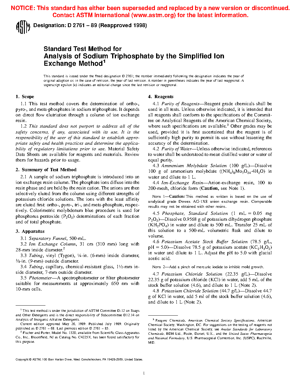 Standard Test Method for Analysis of Sodium Triphosphate by the Simplified Ion Exchange Method (Withdrawn 2001)