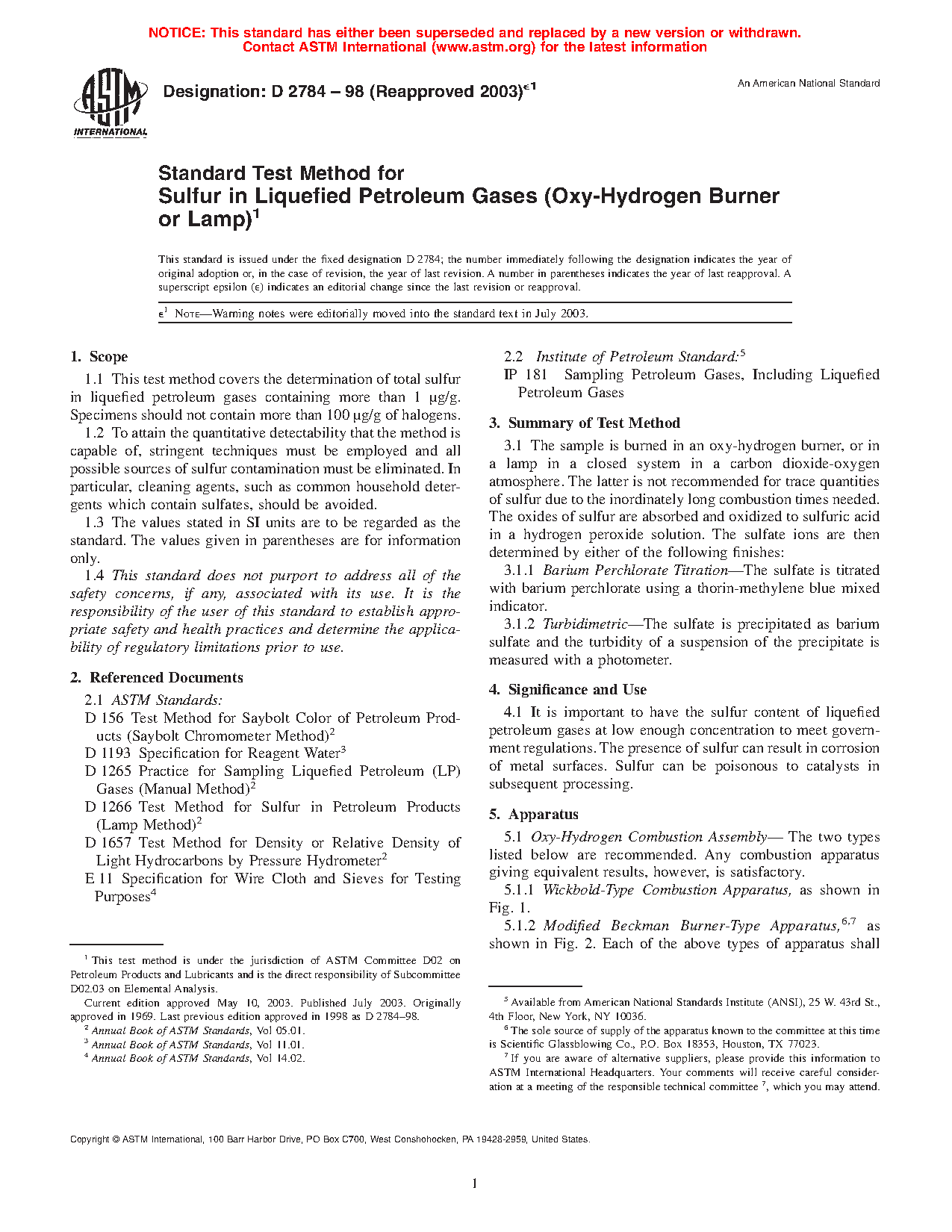 Standard Test Method for Sulfur in Liquefied Petroleum Gases (Oxy-Hydrogen Burner or Lamp)