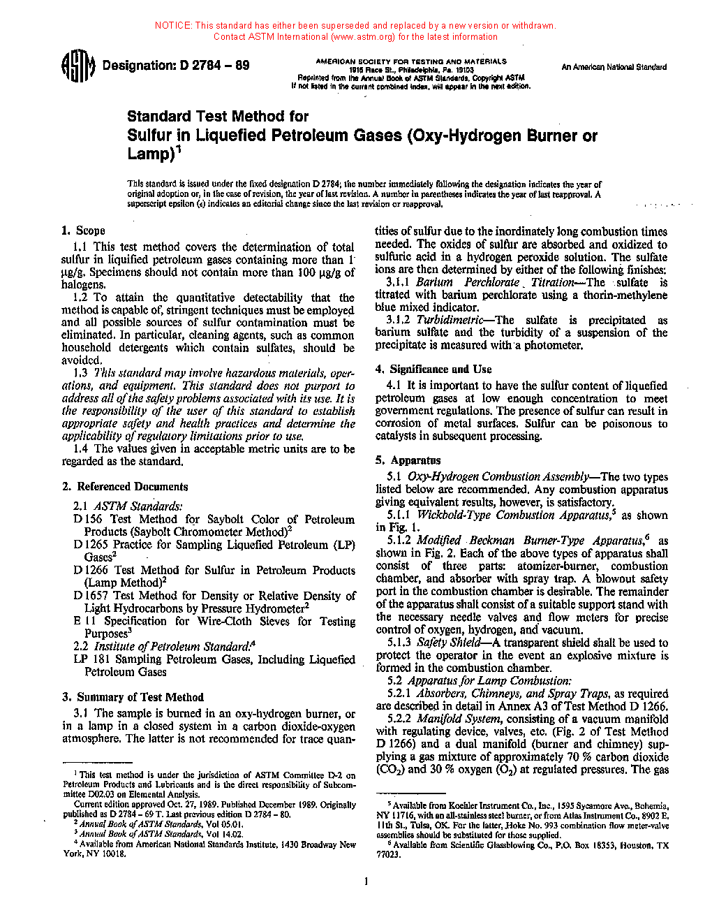 ASTM D2784-89