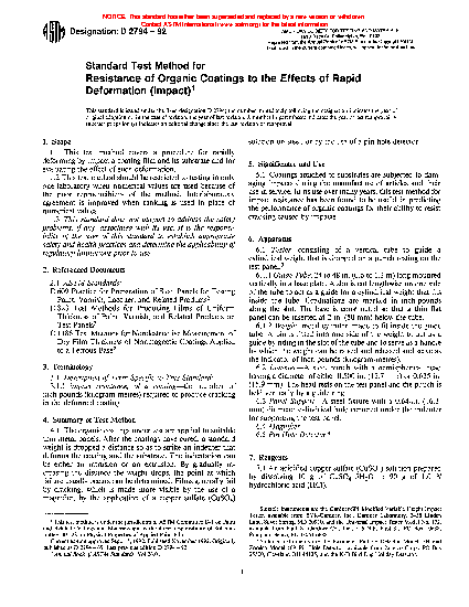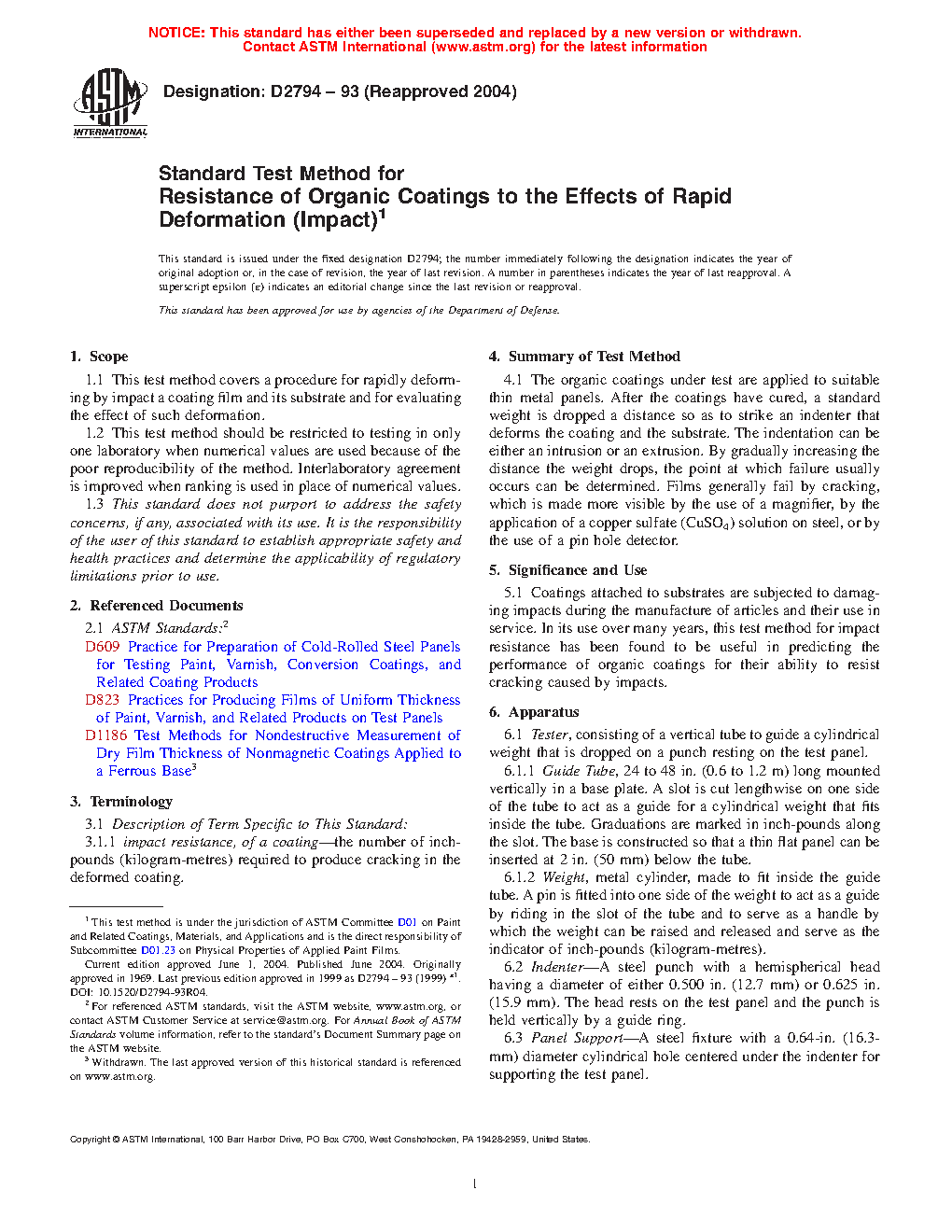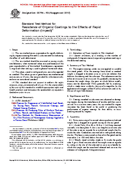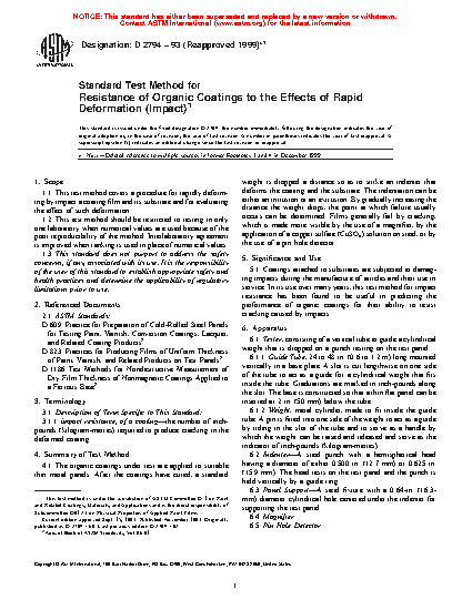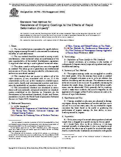 Standard Test Method for Resistence of Organic Coatings to the Effects of Rapid Deformation (Impact)