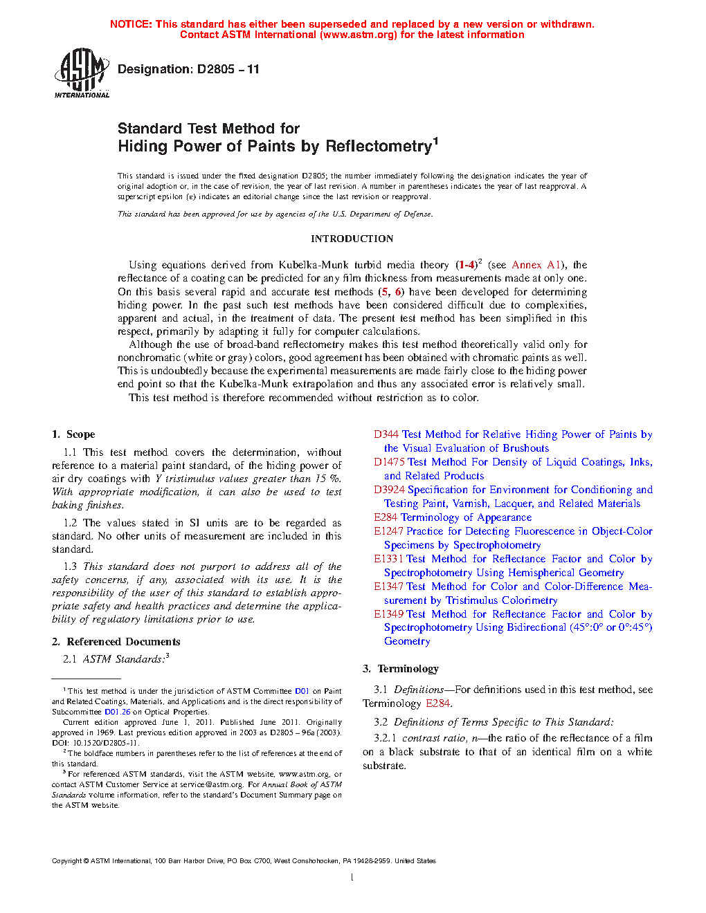 Hiding power Test Method D344 is visual instead of instrumental, and gives results that are relative to a material standard instead of absolute. It is less precise than Test Method D2805 but more closely aligned with practical painting procedures.