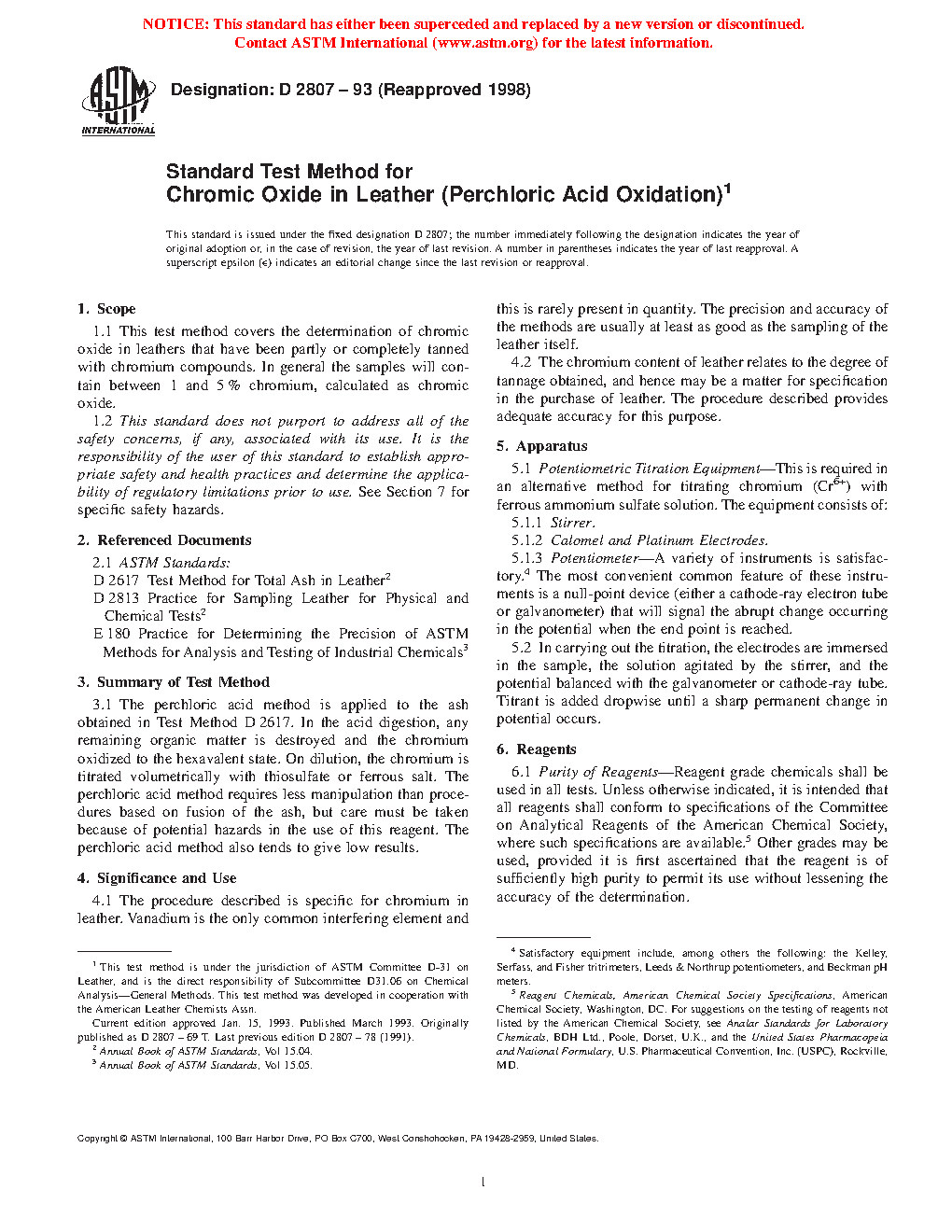 4.2 The chromium content of leather relates to the degree of tannage obtained, and hence may be a matter for specification in the purchase of leather. The procedure described provides adequate accuracy for this purpose.