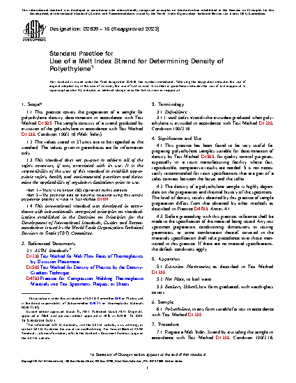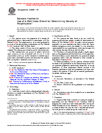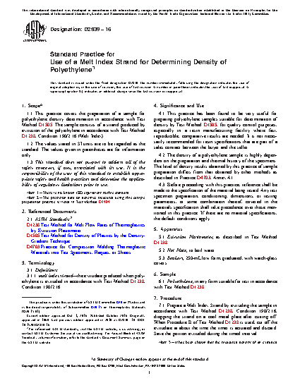This practice has been found to be very useful for preparing polyethylene samples suitable for determination of density by Test Method D 1505