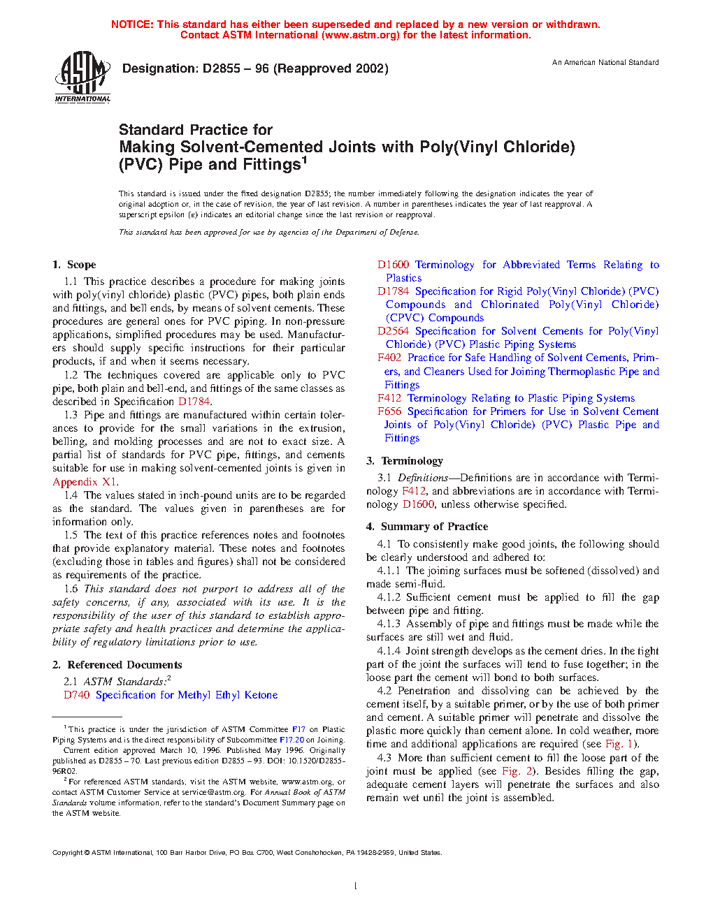 1.5 A partial list of standards for PVC and CPVC pipe, piping components, and solvent cements suitable for use in joining pipe and fittings is given in Appendix X1.