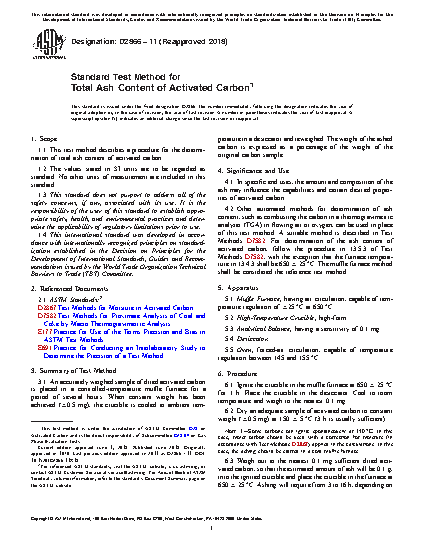 1.1 This test method describes a procedure for the determination of total ash content of activated carbon.