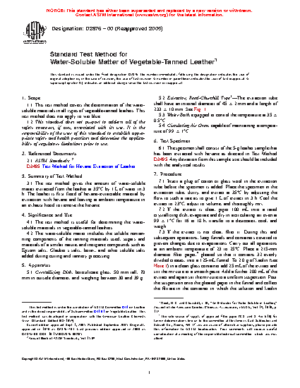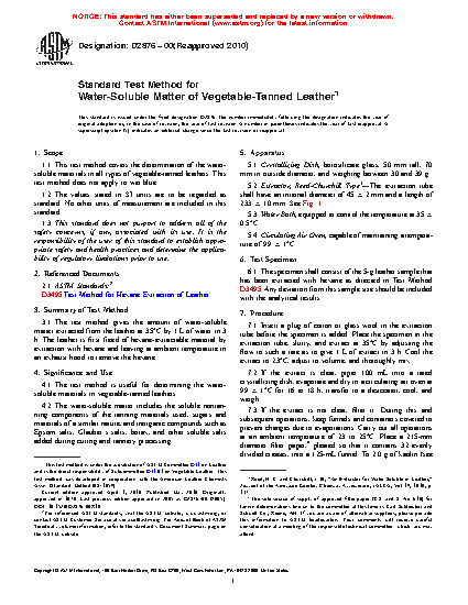 4.1 The test method is useful for determining the water-soluble materials in vegetable-tanned leathers.