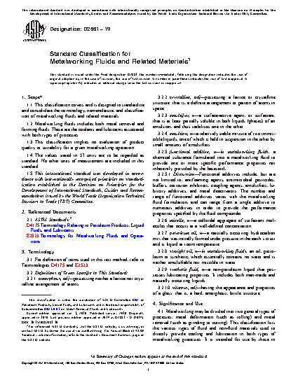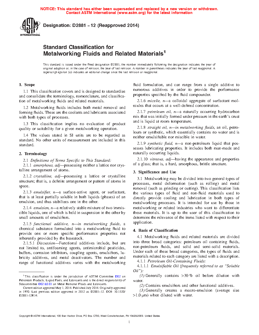 1.1 This classification covers and is designed to standardize and consolidate the terminology, nomenclature, and classification of metalworking fluids and related materials.