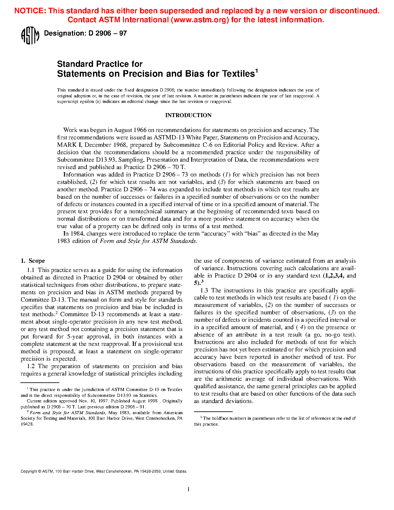 1.2 The preparation of statements on precision and bias requires a general knowledge of statistical principles including the use of components of variance estimated from an analysis of variance. Instructions covering such calculations are available in Practice D 2904 or in any standard text (1,2,3,4, and 5).
