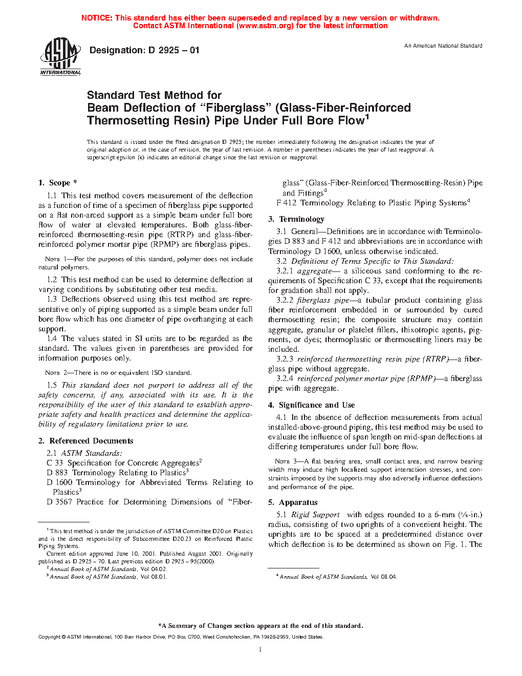 4.1 In the absence of deflection measurements from actual installed-above-ground piping, it is permissible to use this test method to evaluate the influence of span length on mid-span deflections at differing temperatures under full bore flow.