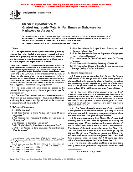 Standard Specification for Graded Aggregate Material For Bases or Subbases for Highways or Airports