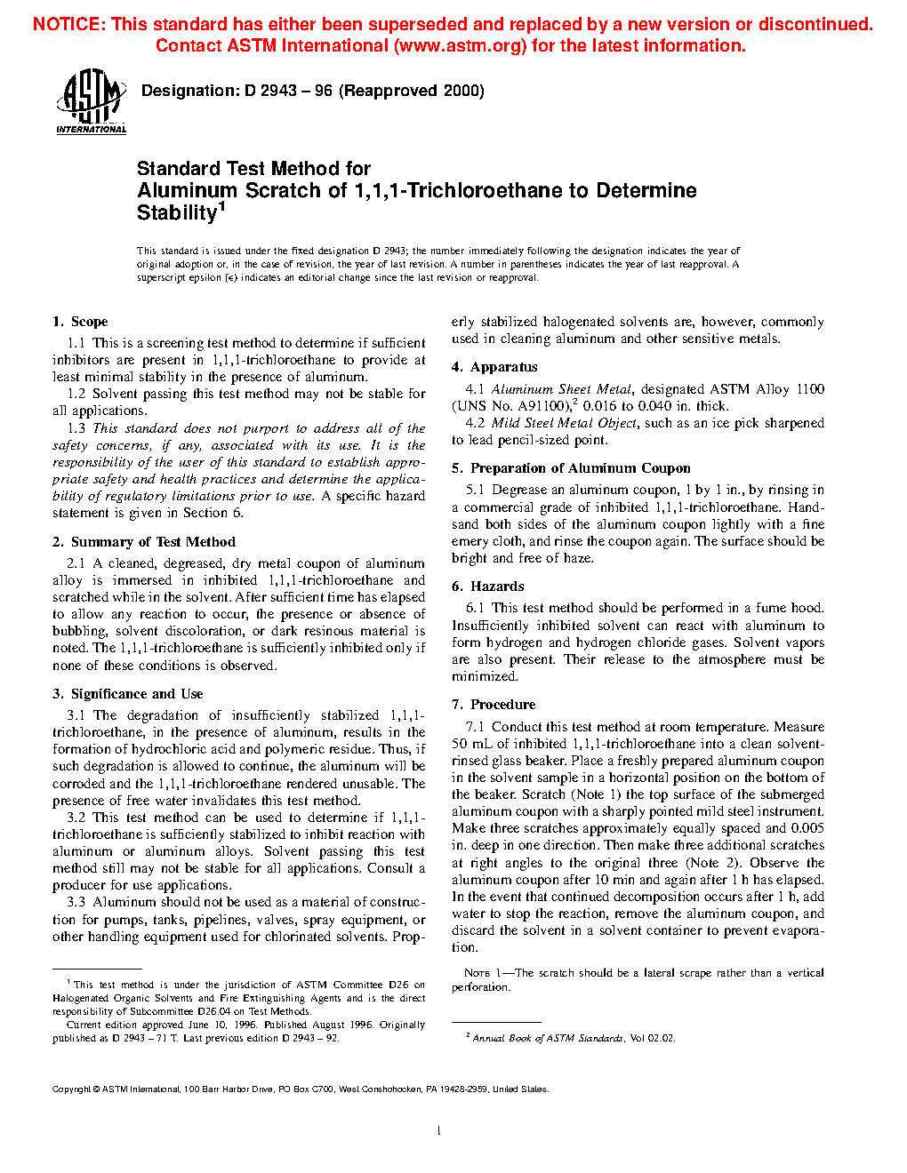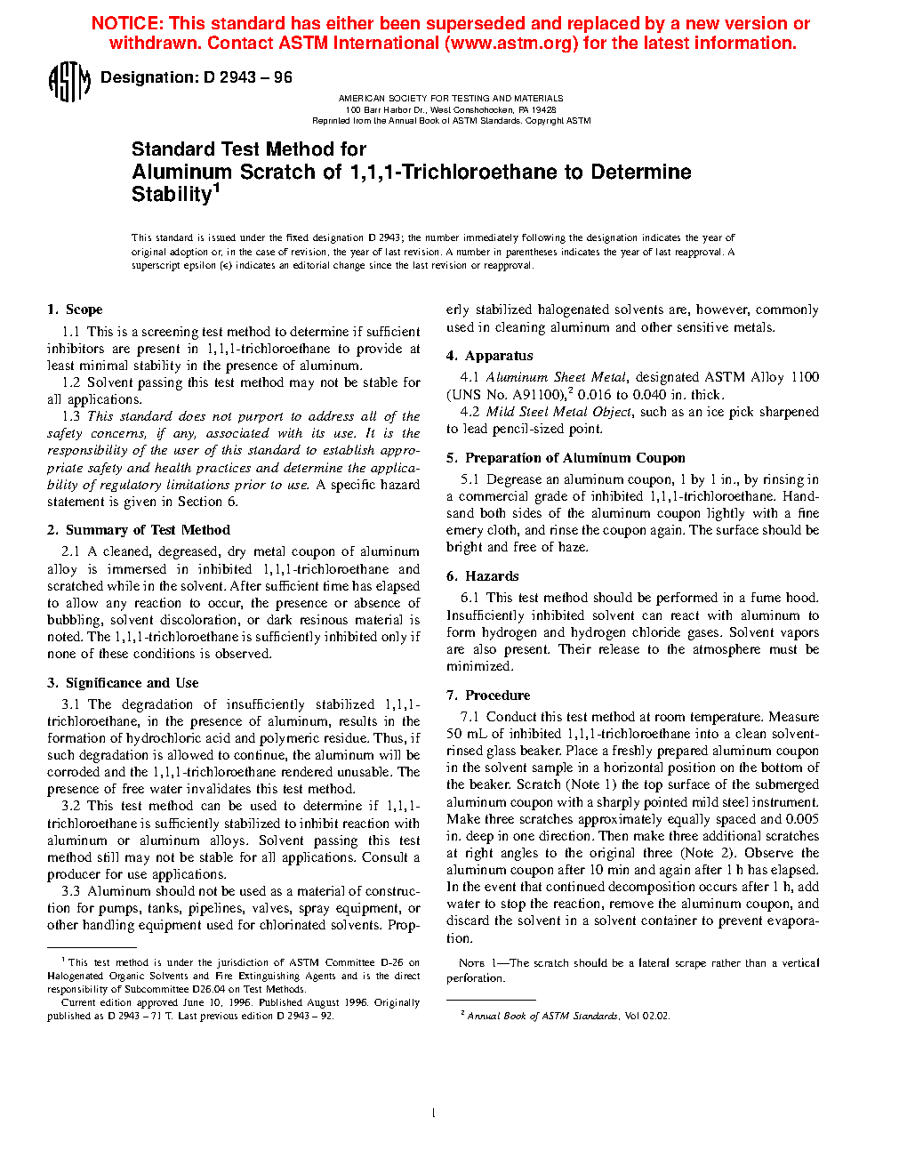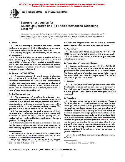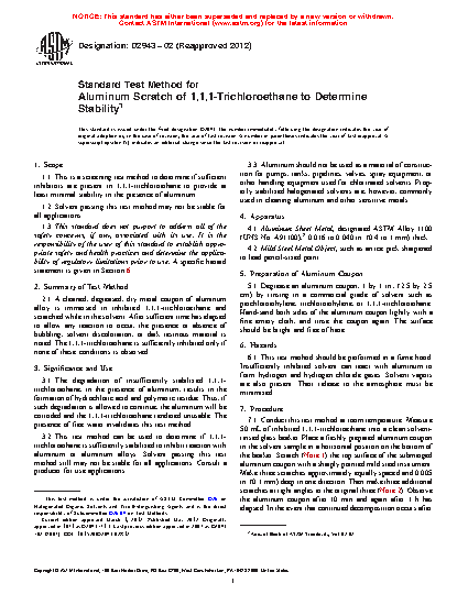 1.1 This is a screening test method to determine if sufficient inhibitors are present in 1,1,1-trichloroethane to provide at least minimal stability in the presence of aluminum.