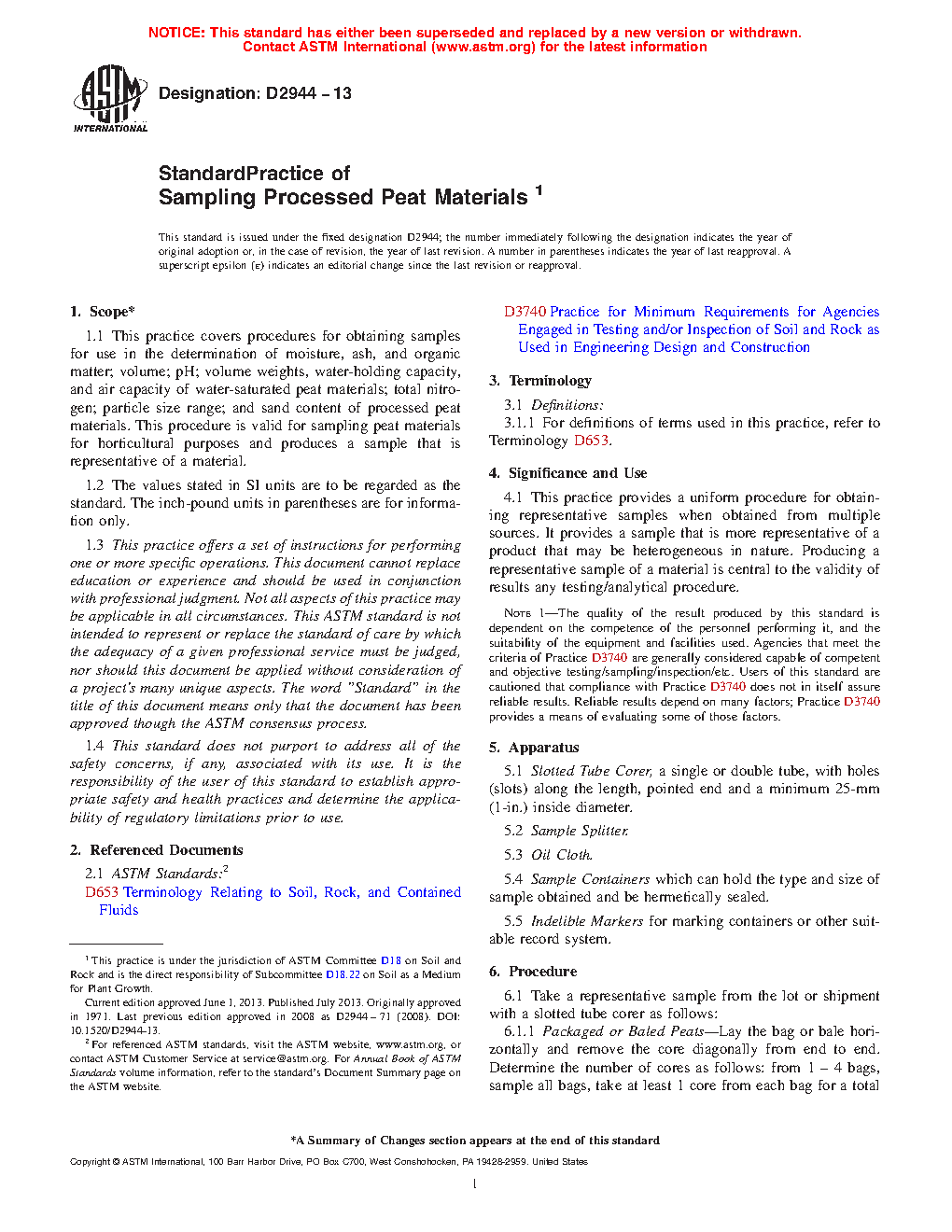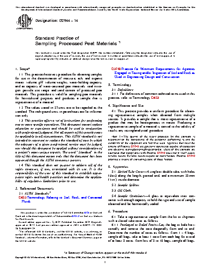 Standard Test Method of Sampling Processed Peat Materials