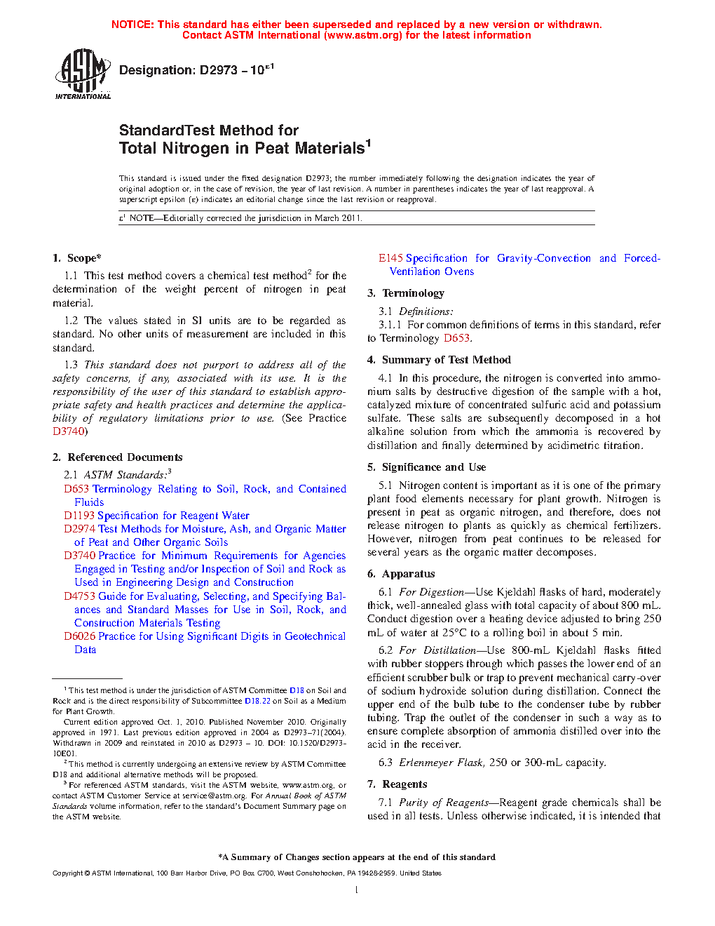 1.1 This test method covers a chemical test method for the determination of the mass percent of nitrogen in peat material.