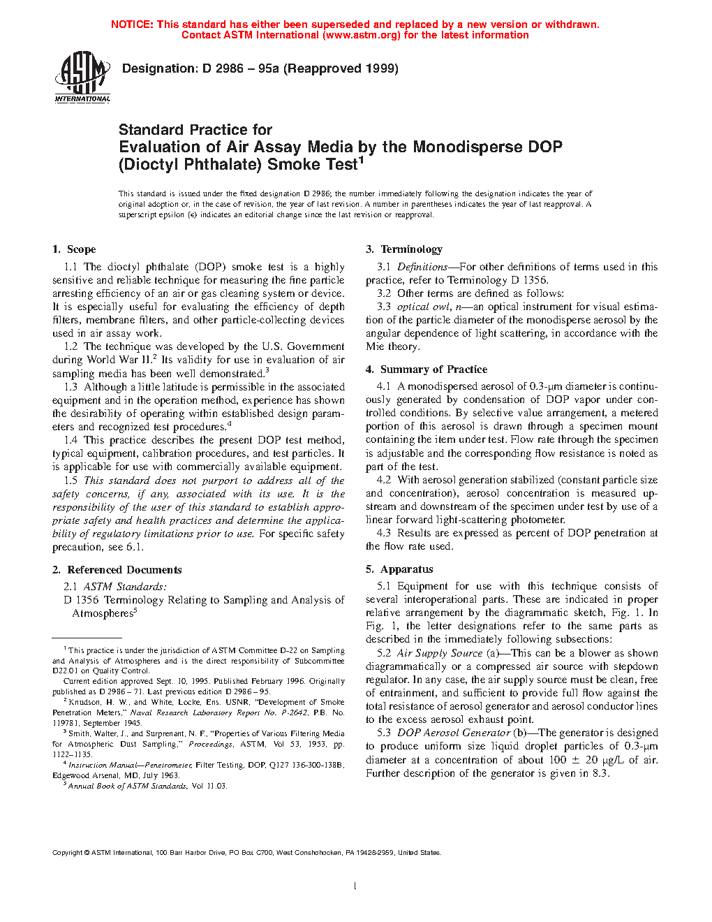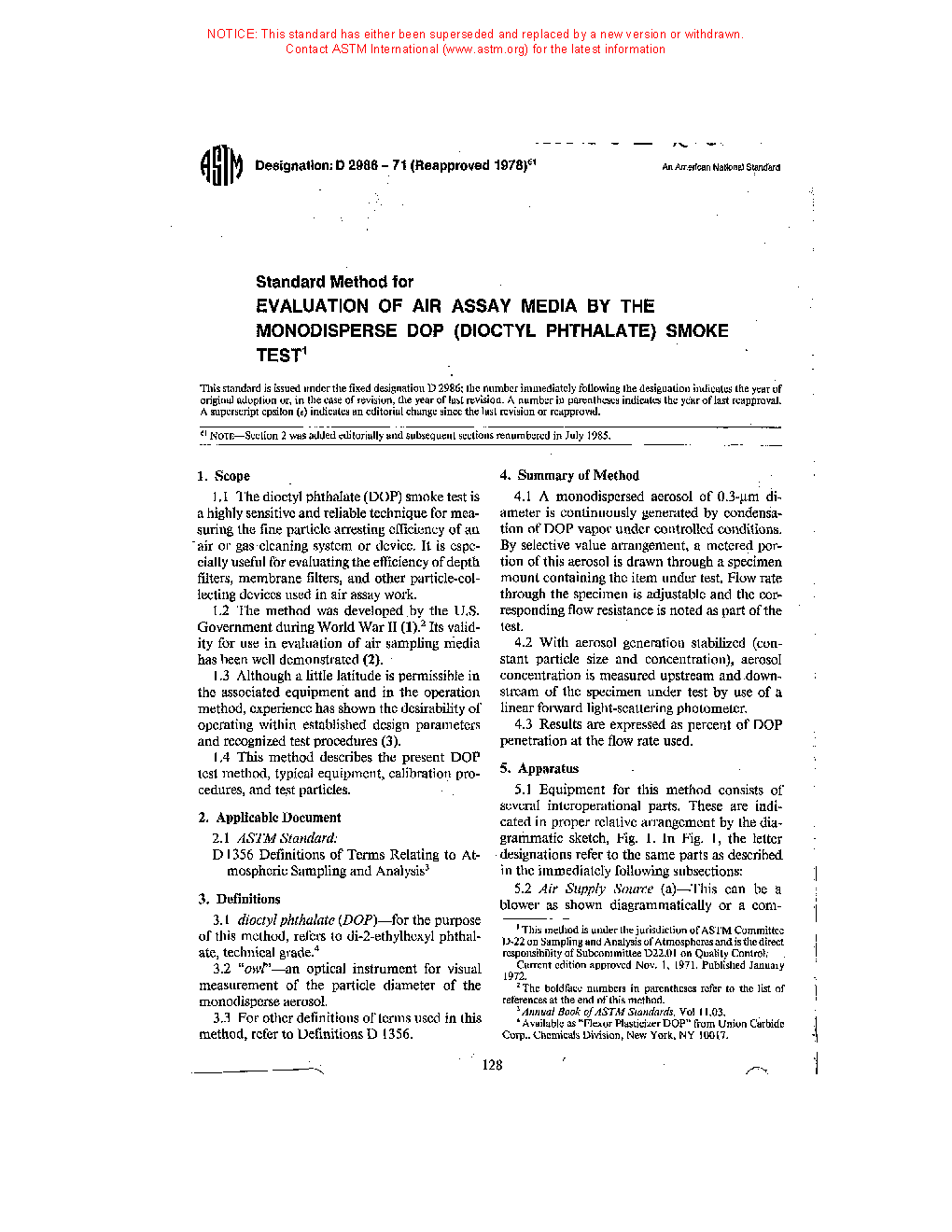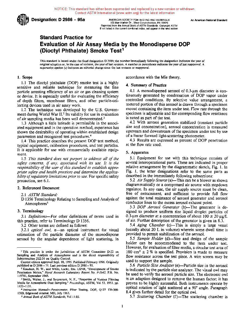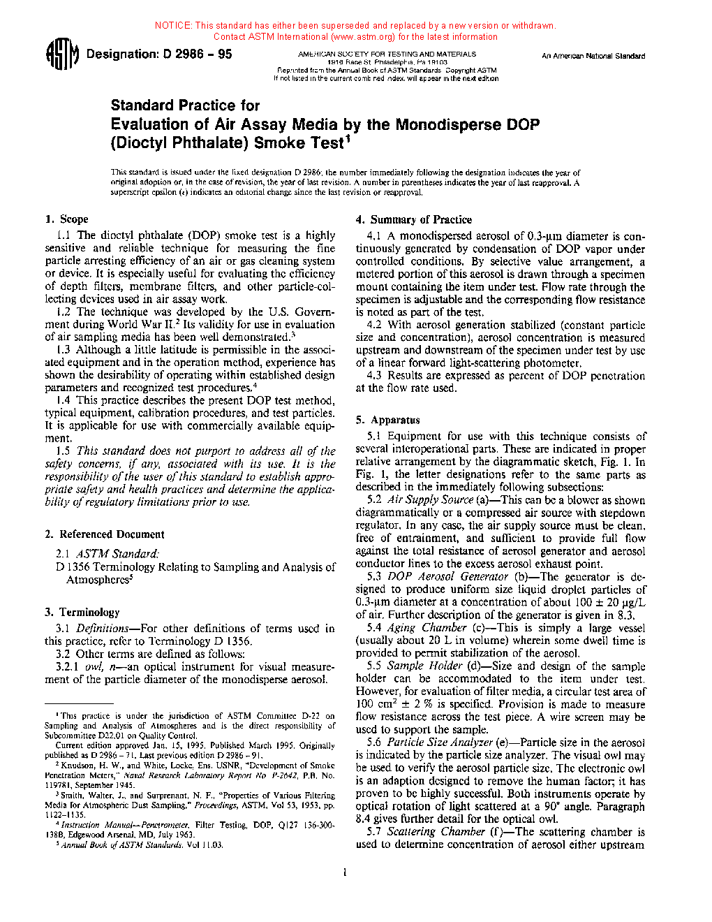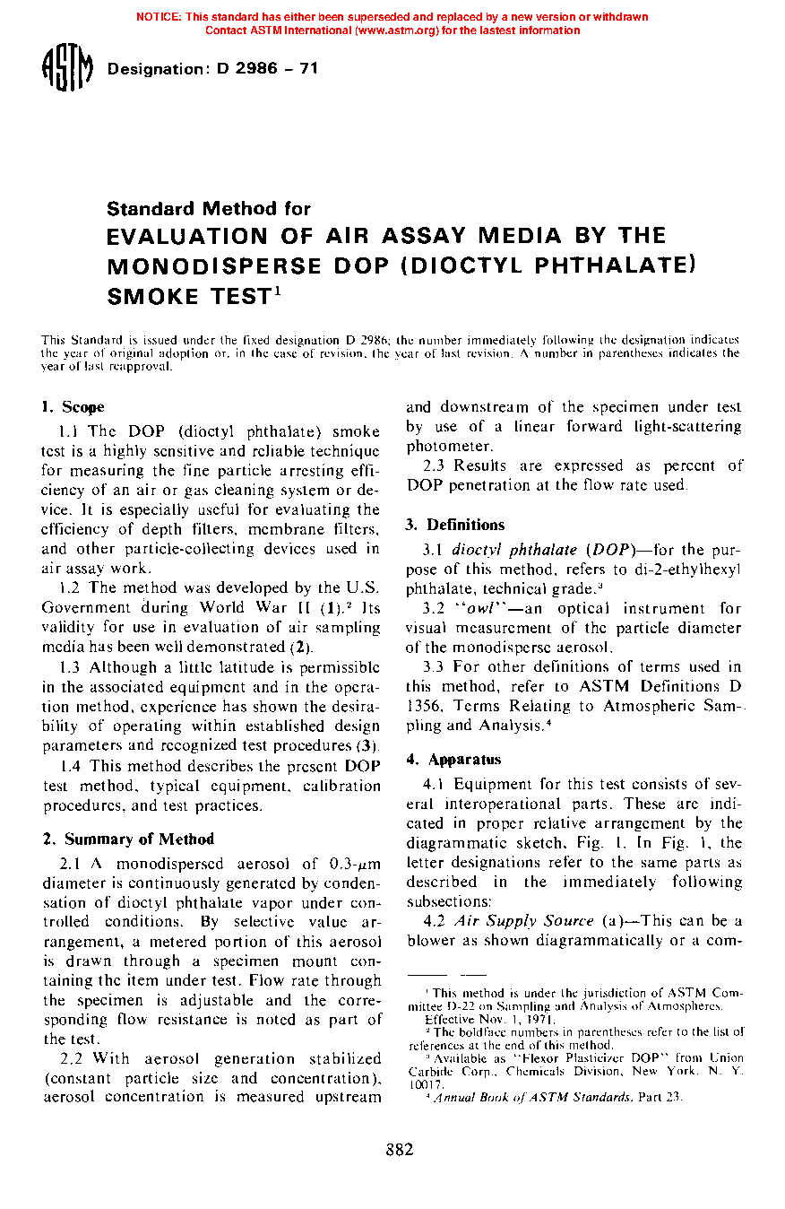 Standard Method For Evaluation Of Air Assay Media By The Monodisperse Dop (Dioctyl Phthalate) Smoke Test