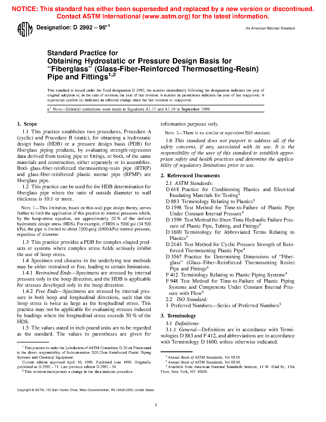 This practice is valid for a given pipe or fitting only so long as the specimens are truly representative of that material and manufacturing process.