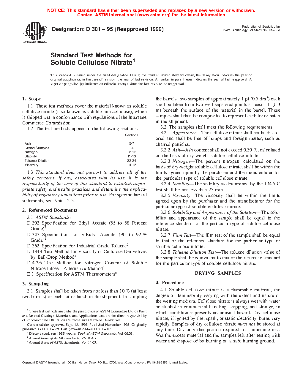 1.1 These test methods cover the material known as soluble cellulose nitrate (also known as soluble nitrocellulose), which is shipped wet in conformance with regulations of the Interstate Commerce Commission.