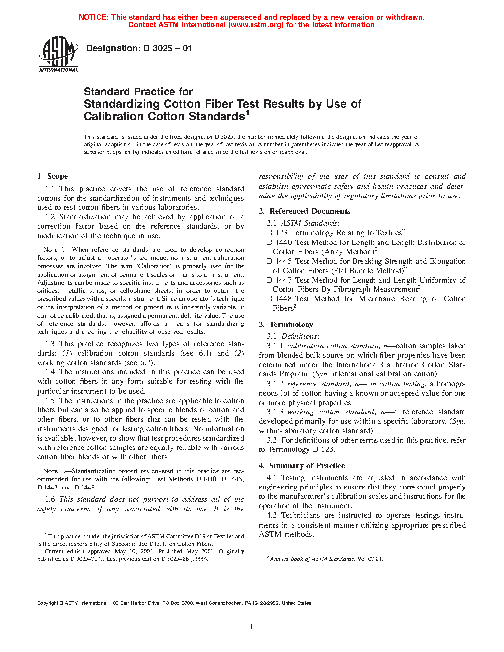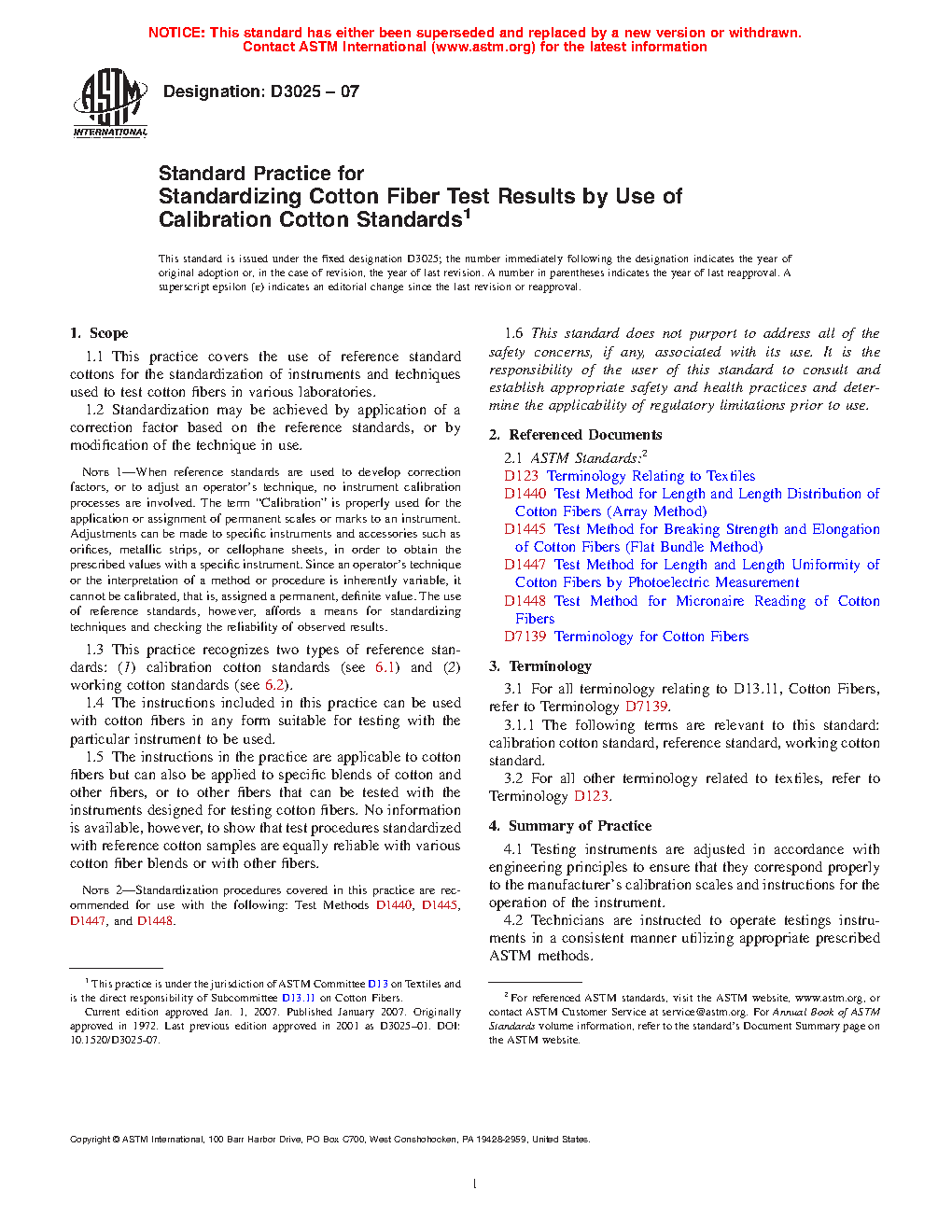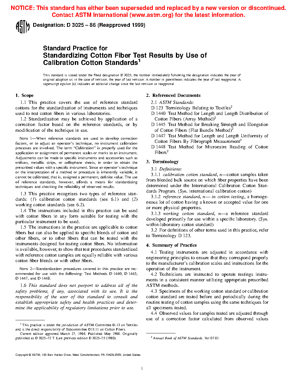 1.3 This practice recognizes two types of reference standards: (1) calibration cotton standards (see 6.1) and (2) working cotton standards (see 6.2).