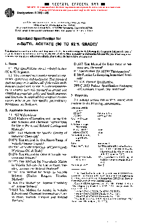 Specification for N-Butyl Acetate (90 TO 92% Grade) (Withdrawn 1986)