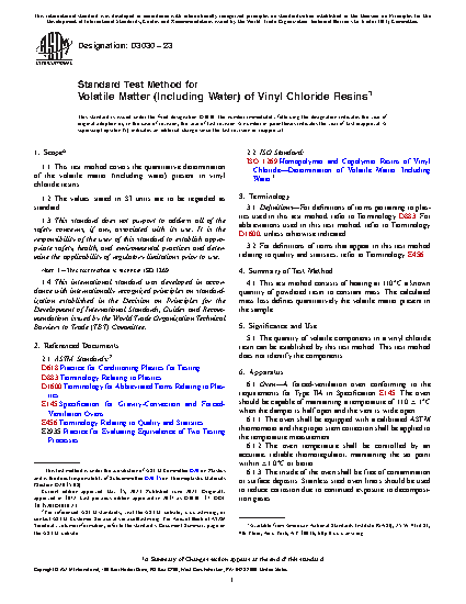 The quantity of volatile components in a vinyl chloride resin can be established by this test method. This test method does not identify the components.