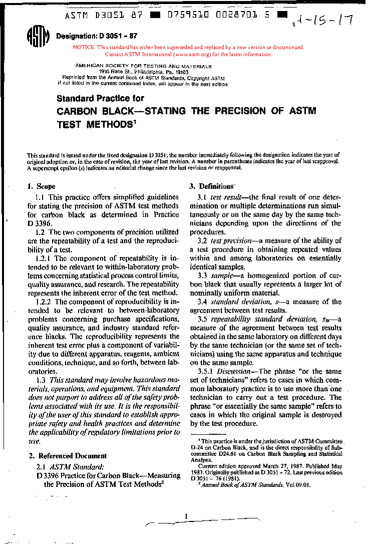 Recommended Practice for Carbon Black--Stating the Precision of ASTM Test Methods (Withdrawn 1990)