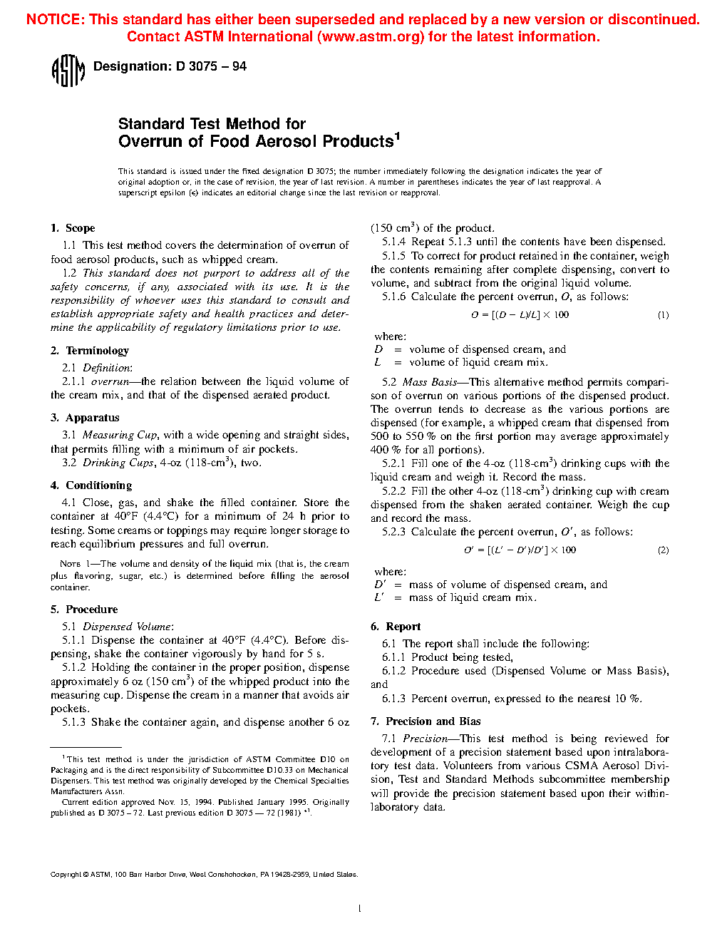 Standard Test Method for Overrun of Food Aerosol Products (Withdrawn 2001)