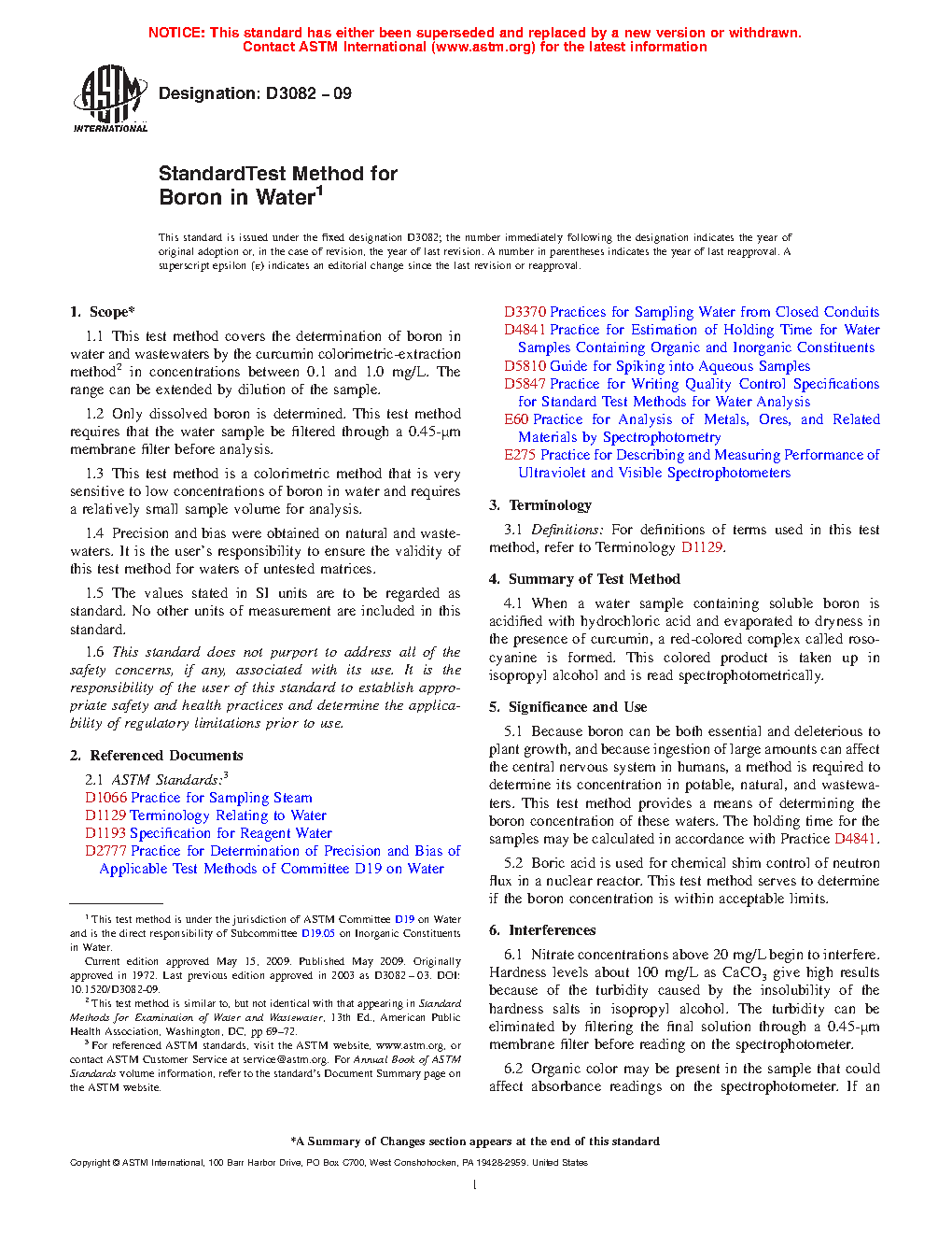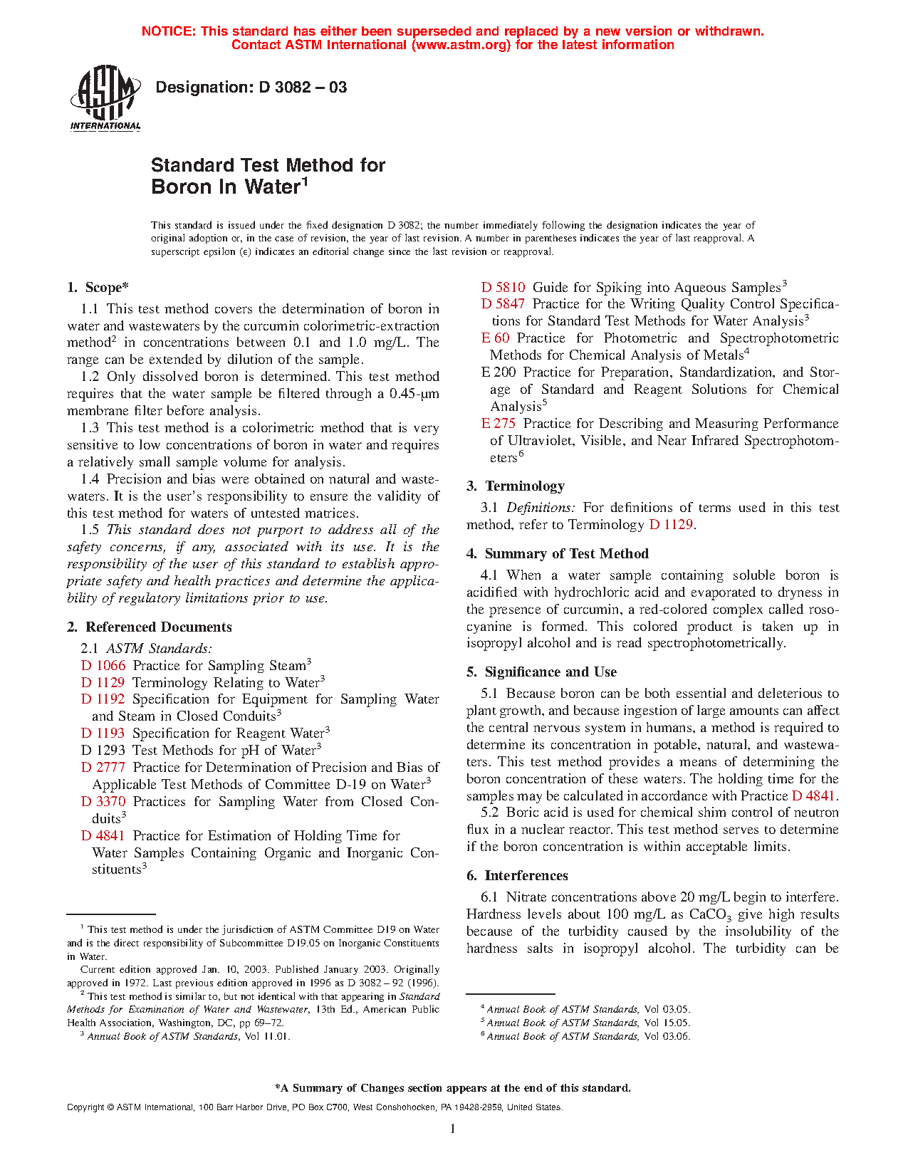 1.3 This test method is a colorimetric method that is very sensitive to low concentrations of boron in water and requires a relatively small sample volume for analysis.