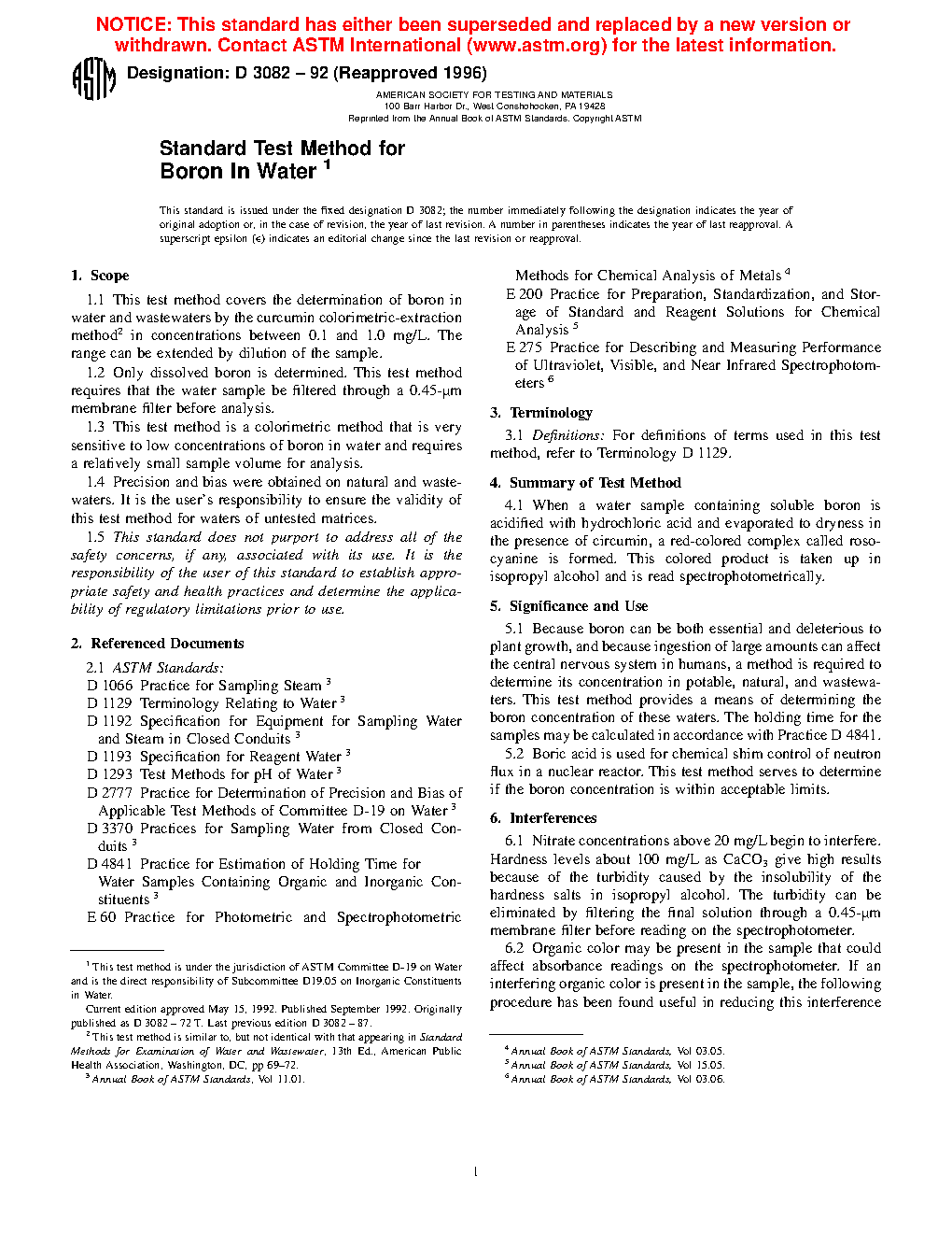1.2 Only dissolved boron is determined. This test method requires that the water sample be filtered through a 0.45-μm membrane filter before analysis.