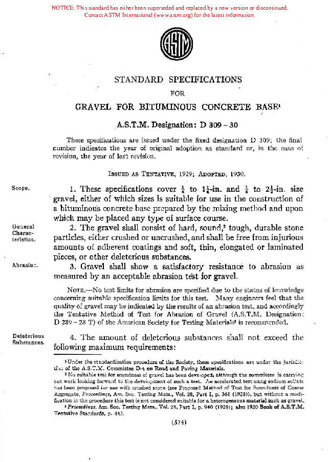Specification for Crushed Stone, Crushed Slag, and Gravel for Bituminous Concrete Base and Surface Courses of Pavements (Withdrawn 1942)