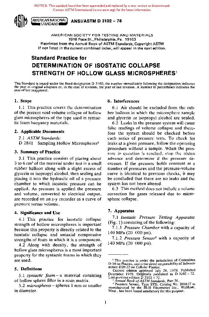 Practice for Determination of Isostatic Collapse Strength of Hollow Glass Microspheres