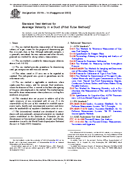 1.1 This test method describes measurement of the average velocity of a gas stream for the purpose of determining gas flow in a stack, duct, or flue. Although technically complex, it is generally considered the most accurate and often the only practical test method for taking velocity measurements.