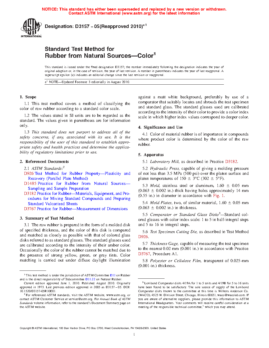1.1 This test method covers a method of classifying the color of raw rubber according to a standard color scale.