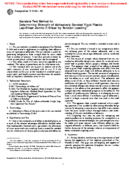 1.1 This test method is intended to complement Test Method D1002 and extend its application to single-lap shear adhesive joints of rigid plastic adherends. The test method is useful for generating comparative shear strength data for joints made from a number of plastics. It can also provide a means by which several plastic surface treatments can be compared.