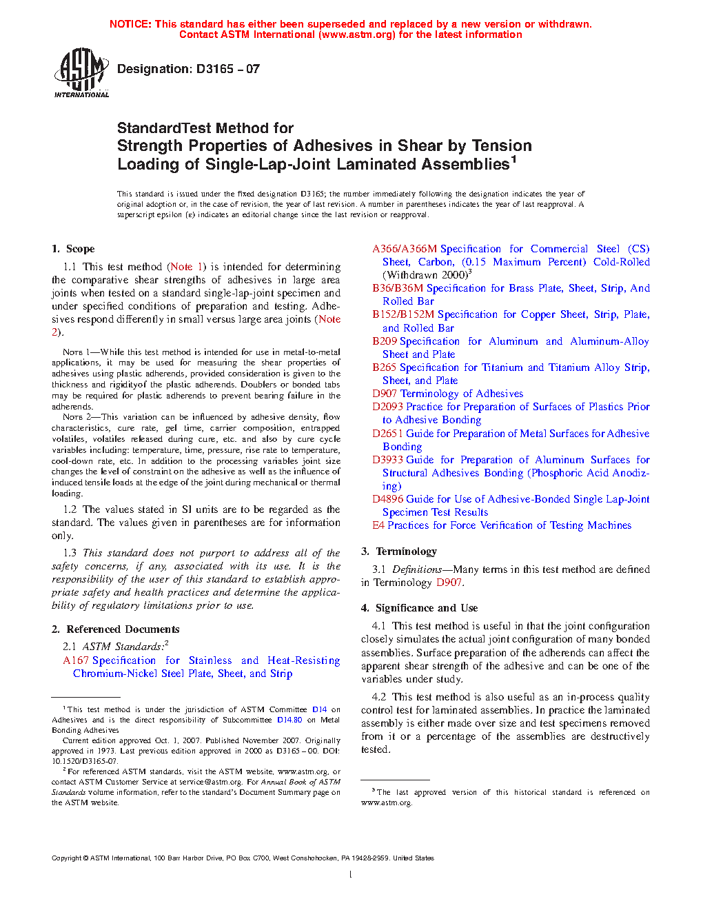 4.5 Single-lap tests may be used for comparing and selecting adhesives or bonding processes for susceptibility to fatigue and environmental changes, but such comparisons must be made with great caution since different adhesives may respond differently in different joints. Review Guide D4896 for further discussion of concepts for interpretation of adhesive-bonded single-lap joint data.