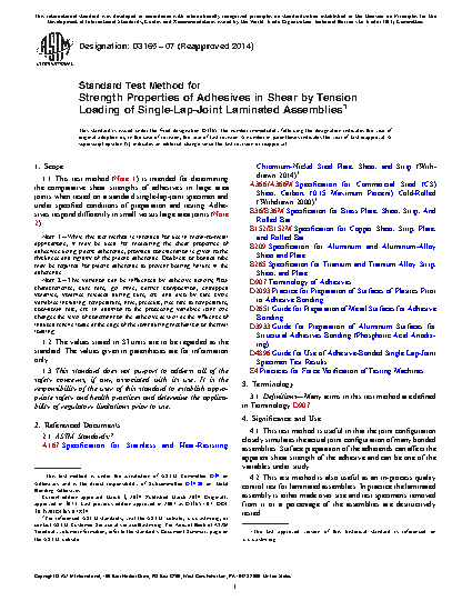 1.1 This test method (Note 1) is intended for determining the comparative shear strengths of adhesives in large area joints when tested on a standard single-lap-joint specimen and under specified conditions of preparation and testing. Adhesives respond differently in small versus large area joints (Note 2).