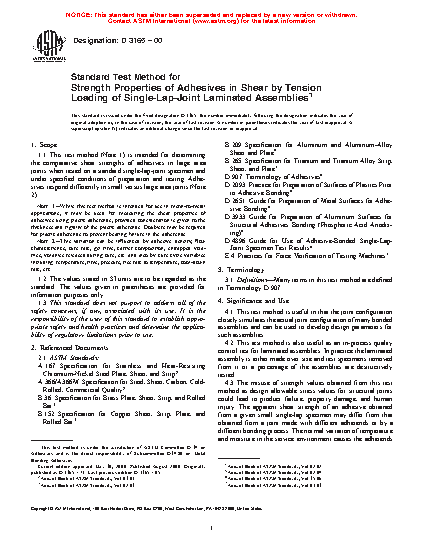 Note 1: While this test method is intended for use in metal-to-metal applications, it may be used for measuring the shear properties of adhesives using plastic adherends, provided consideration is given to the thickness and rigidity of the plastic adherends. Doublers or bonded tabs may be required for plastic adherends to prevent bearing failure in the adherends.