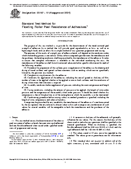 1.2 A variation in thickness of the adherends will generally influence the test values. For this reason, the thickness of the sheets used to make the test specimens shall be specified in the material specification. When no thickness is specified, the flexible adherend shall be 0.63 mm (0.025 in.) thick and the rigid adherend shall be 1.63 mm (0.064 in.) thick.