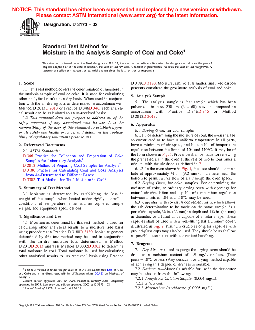 Standard Test Method for Moisture In The Analysis Sample Of Coal And Coke