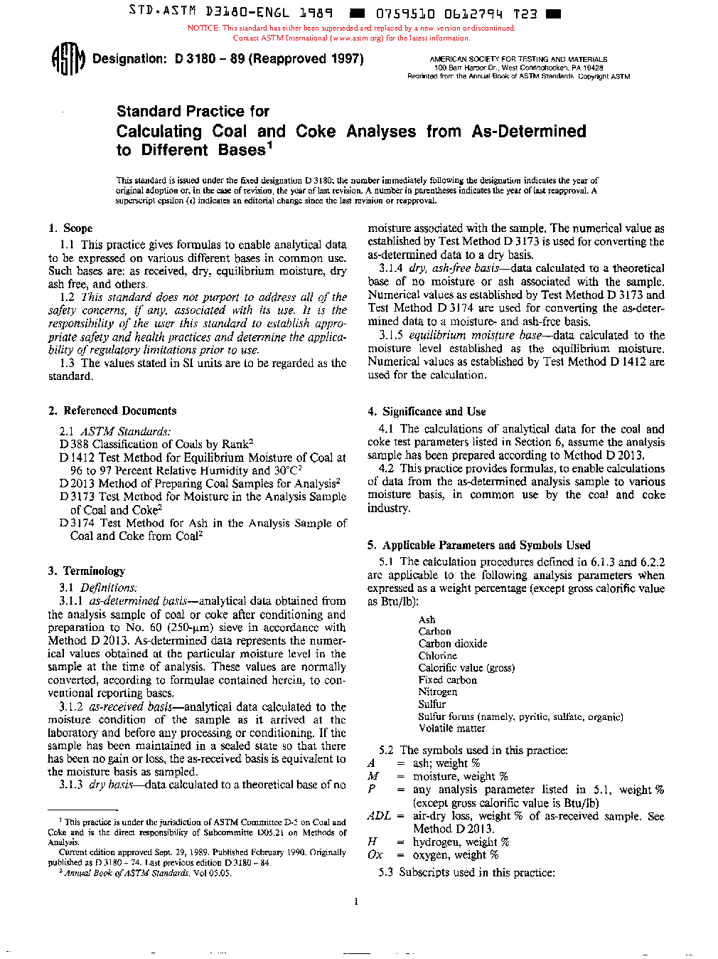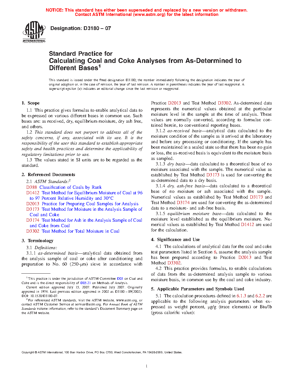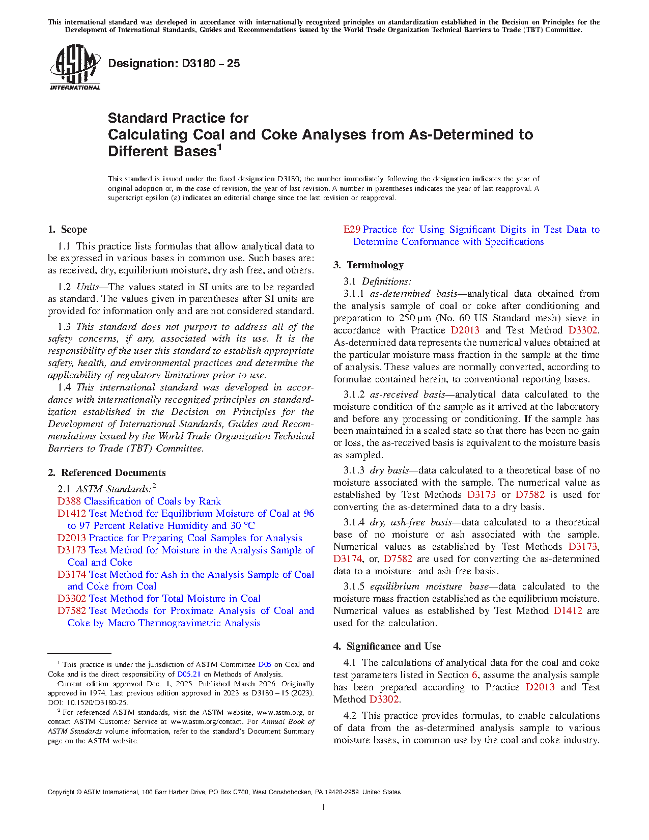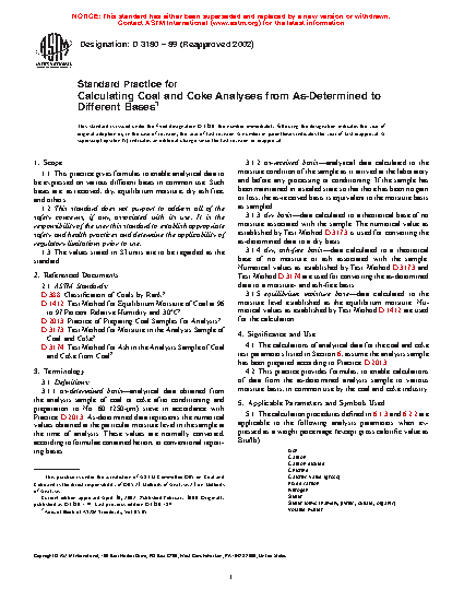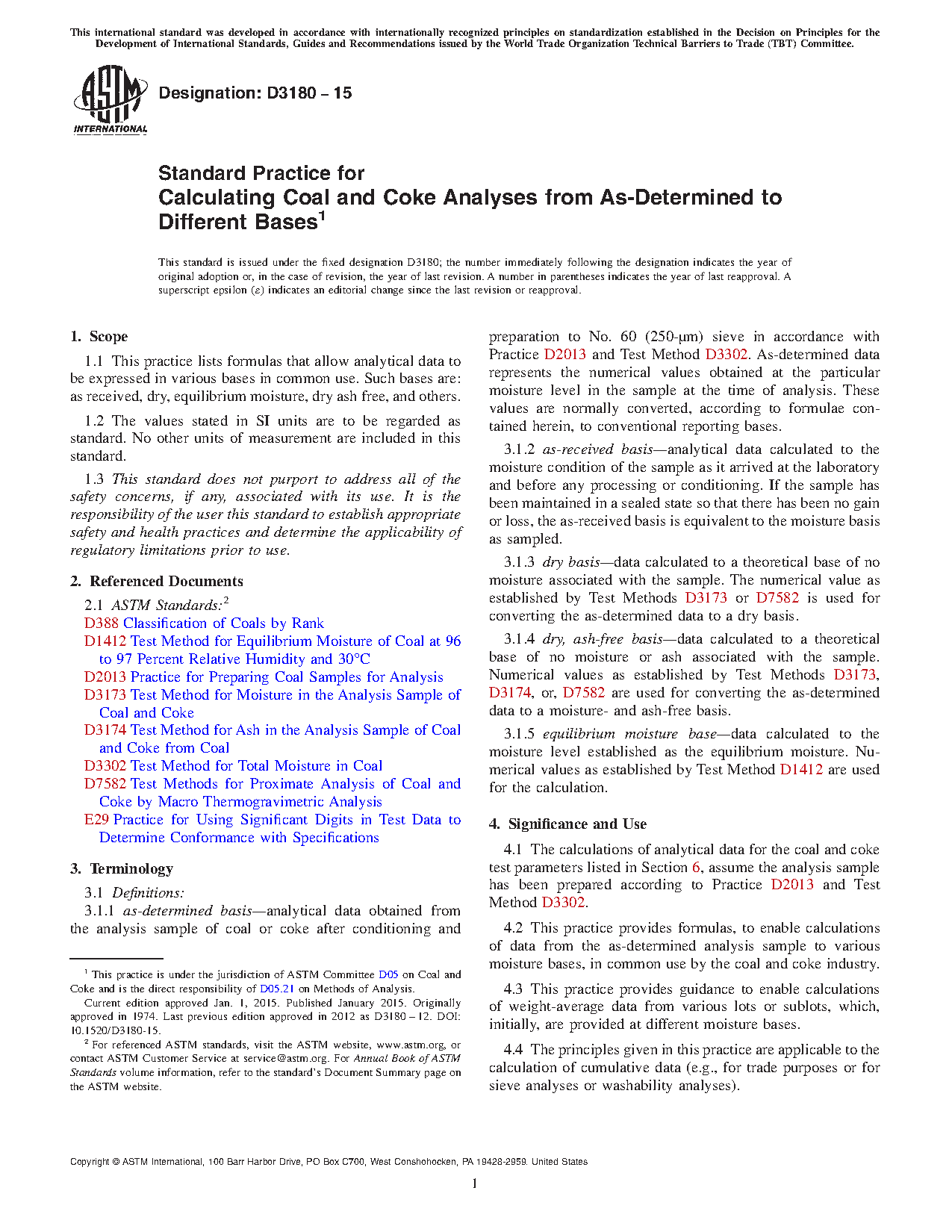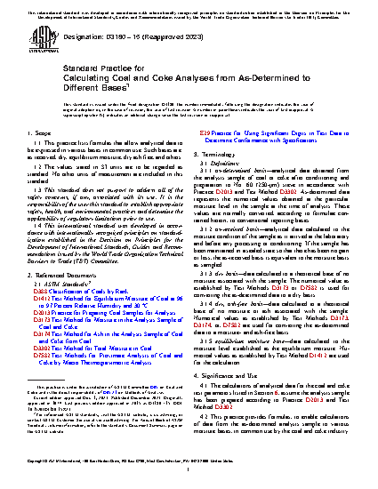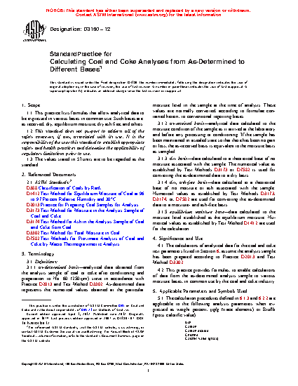 4.2 This practice provides formulas, to enable calculations of data from the as-determined analysis sample to various moisture bases, in common use by the coal and coke industry.