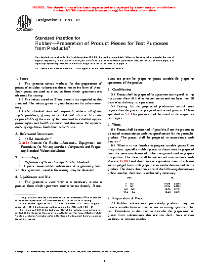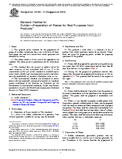 1.1 This practice covers methods for the preparation of pieces of a rubber vulcanizate that is not in the form of sheet. Such pieces are used as a source from which specimens are obtained for testing.