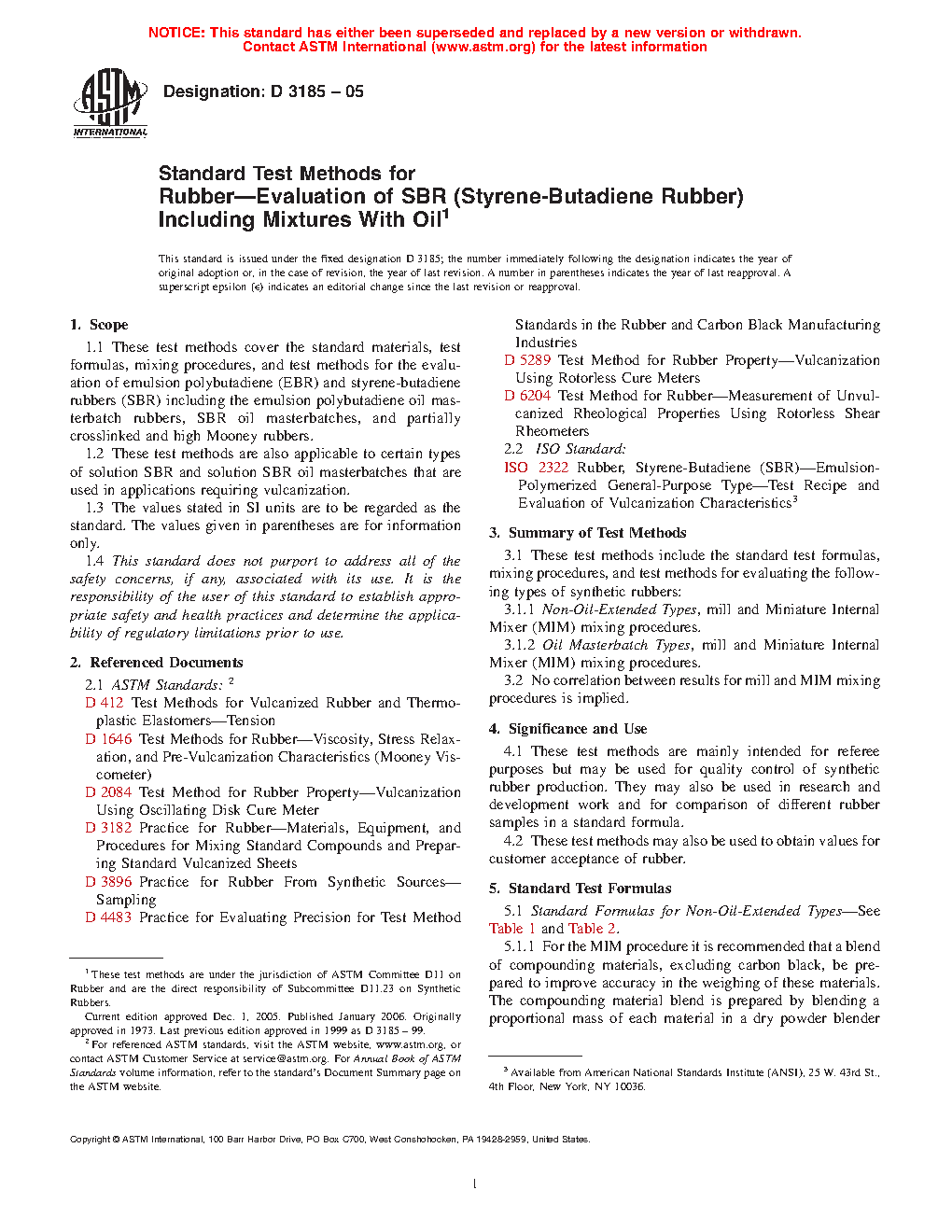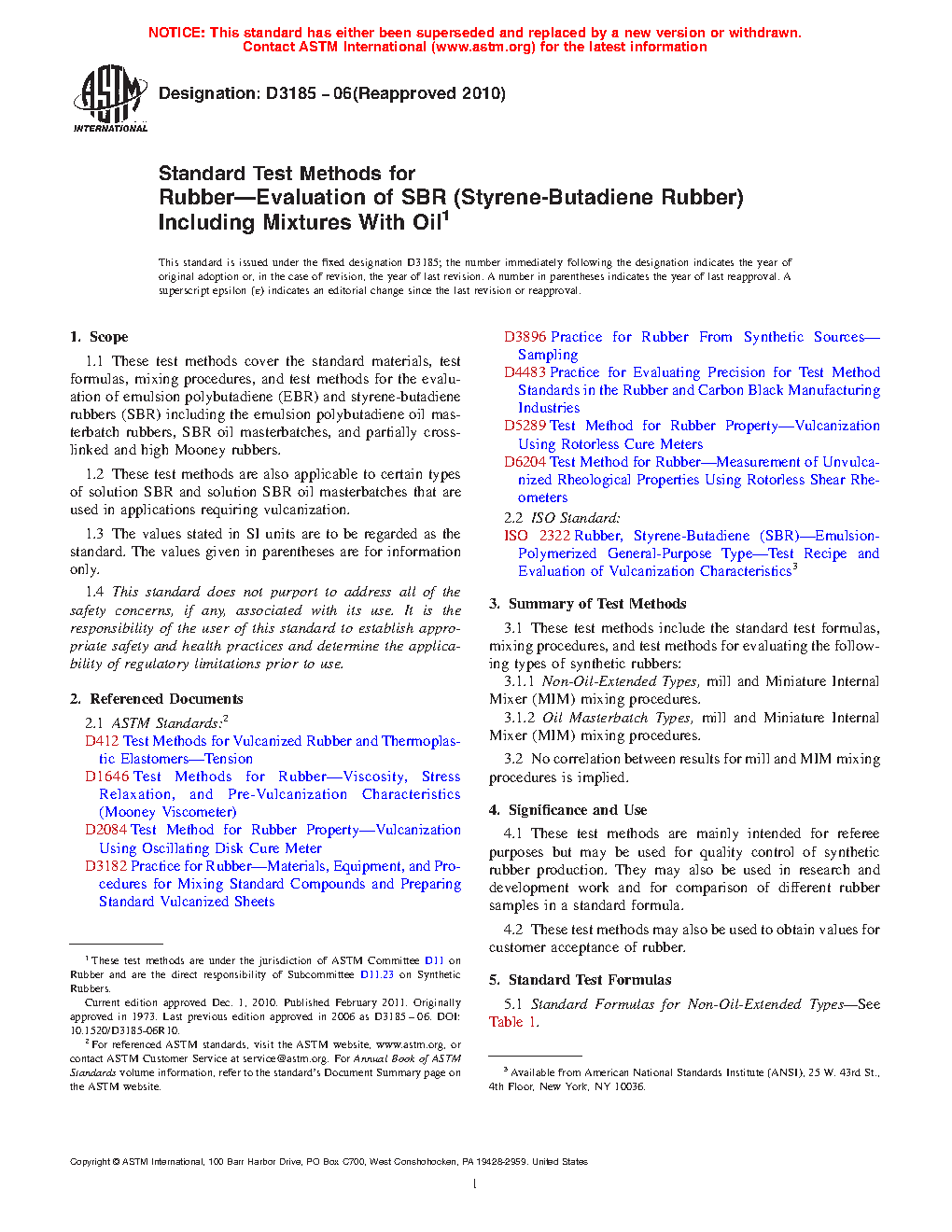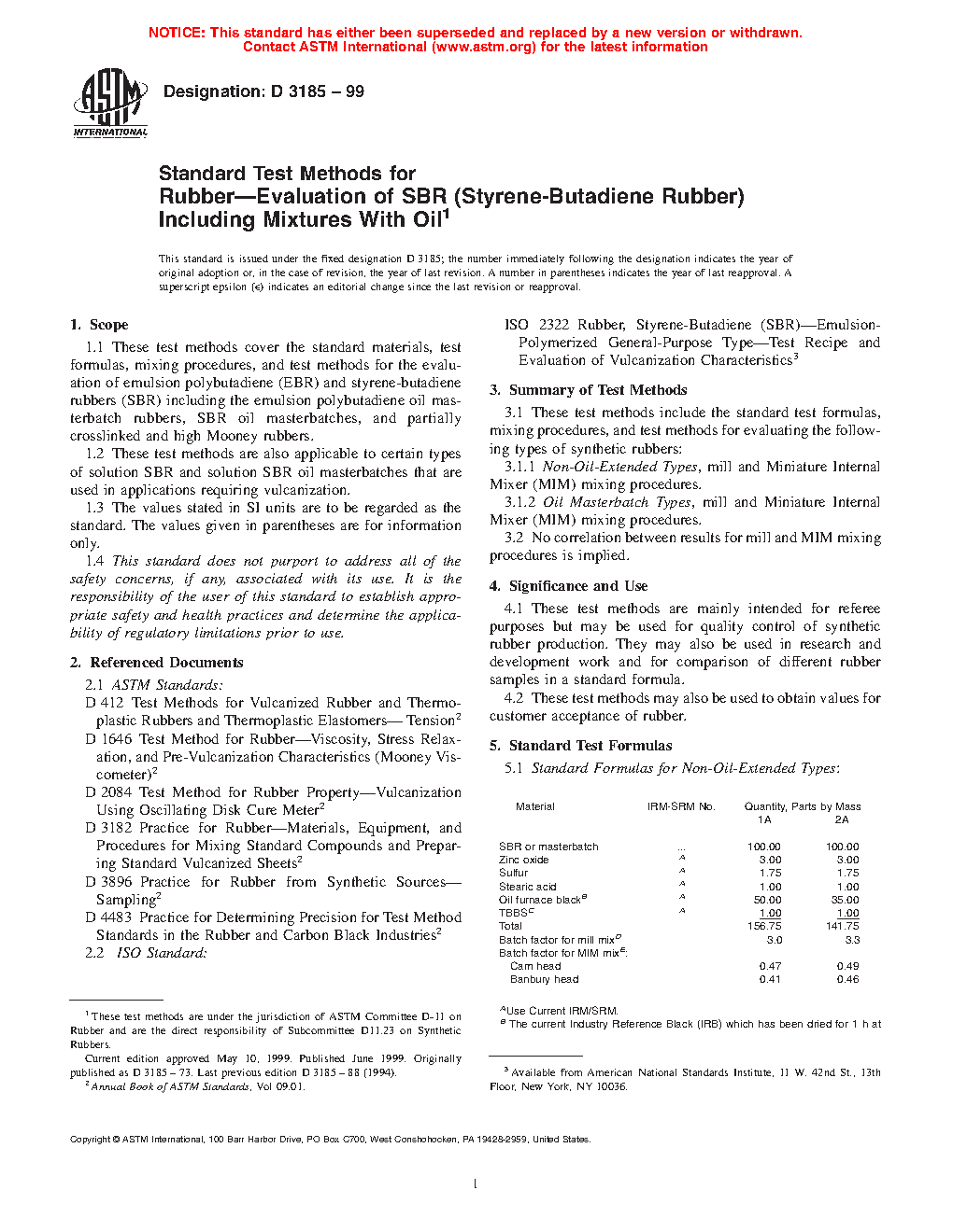 These test methods are mainly intended for referee purposes but may be used for quality control of synthetic rubber production. They may also be used in research and development work and for comparison of different rubber samples in a standard formula.